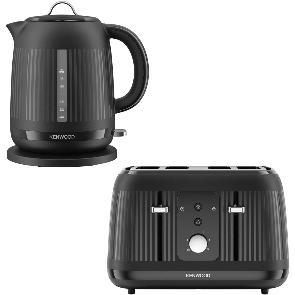 Inspired by the calming tones of early morning, the Kenwood Dawn Collection in Midnight Black brings a sense of tranquillity to your kitchen. This collection features a textured striped design with a subtle blend of gloss and matte finishes, creating an elegant and timeless aesthetic. The 1.7L Kettle is designed for both style and efficiency. With 3KW of power, it delivers a rapid boil, ensuring hot water in no time. The concealed heating element reduces limescale buildup, while the removable filter makes cleaning effortless. Its clear water window helps you boil only what you need, saving both time and energy. For added convenience, the pull-off lid and 360° swivel base make it ideal for both left- and right-handed use. Boil-dry protection ensures safety by shutting off the kettle when necessary. The 4-Slot Toaster is designed for versatility and precision, featuring five adjustable browning levels to achieve your perfect toast. The electronic controls allow you to reheat, defrost, toast one-sided bagels, or cancel mid-cycle. With independent toasting slots, you can prepare a quick two-slice breakfast, while the illuminated buttons offer easy visibility. A pull-out crumb tray simplifies cleaning, and cord storage keeps your countertop tidy. Designed as a coordinated set, the Kenwood Dawn Collection is the perfect companion for early mornings and relaxing breaks throughout the day, offering both style and functionality in every detail.
