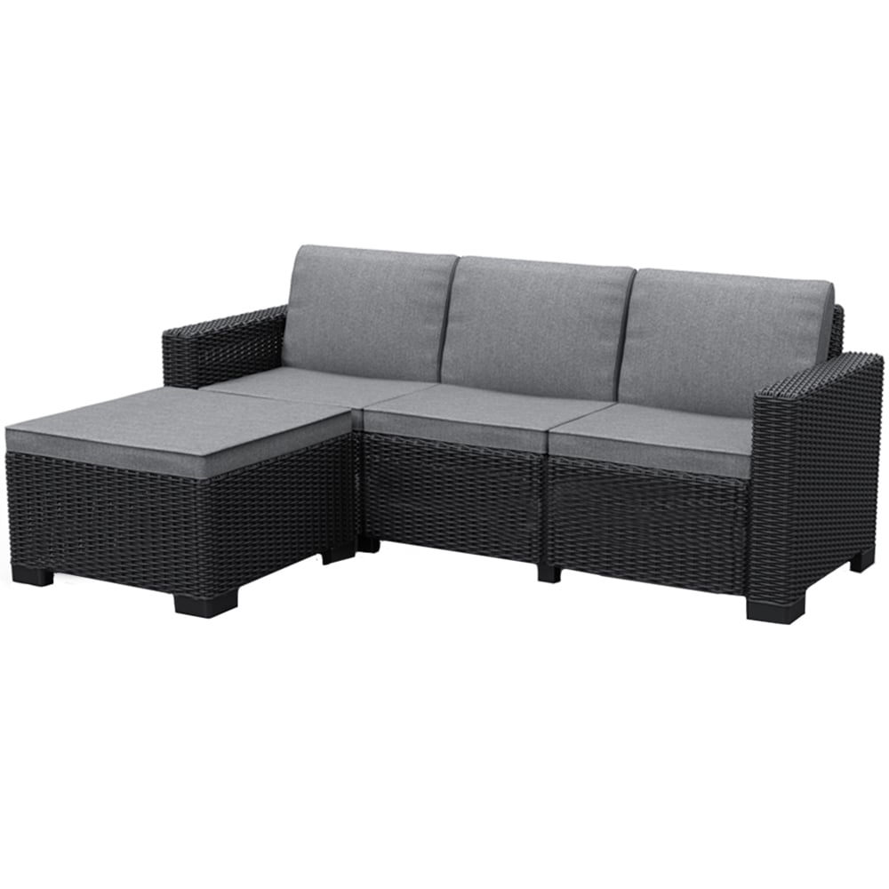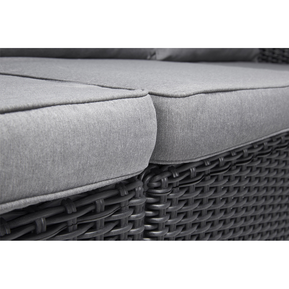 The Keter California Outdoor Lounge Set consists of a two seater sofa with wide deep seating , and square foot stool with cushion which is perfect for putting your feet up and relaxing or as an extra seating option when hosting indoors in your conservatory, or outdoors on gardens and patio areas. Each piece is made of more than 83% recycled plastic with a 6mm round wicker design. The woven wicker style creates a luxurious and trendy look and can create a focal point in any outdoor space. Sleek and sophisticated, the garden furniture features a rattan, round double weave that is UV Resistant, durable and low maintenance. The cushions included are 7.5 cm thick and provide optimal seating comfort to relax and unwind. Lightweight in its structure therefore is easier to move to suit any setting and is easy and quick to assemble. The garden set is completely maintenance-free and weather-resistant, so you can enjoy the lounge set for years to come. Protect your garden furniture with our durable and waterproof covers. Explore our wide range of heavy-duty Garden Furniture covers to find the perfect fit for your needs.