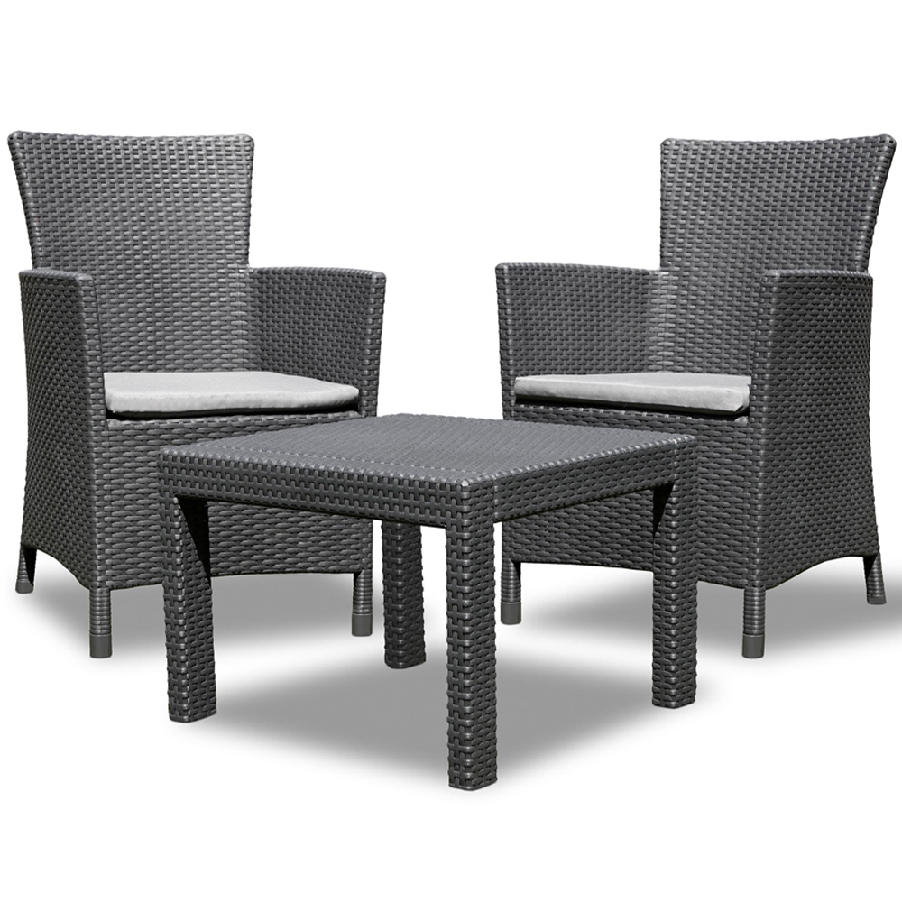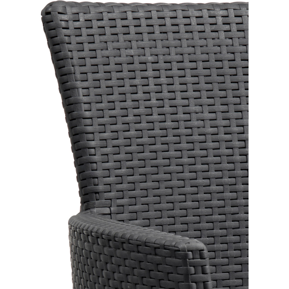 The high backrest of the Rosario garden chair allows for extra comfort when lounging in your garden or patio. Thanks to the small storage table, there is always room for this duo set on your terrace or balcony. The durable flat wicker is weather-resistant and easy to clean. Enjoying the long summer days is done with ease with the balcony set. The storage table has a modern smooth tabletop, and with the matching seat cushions, this set is an asset for any garden, patio, or balcony setting.