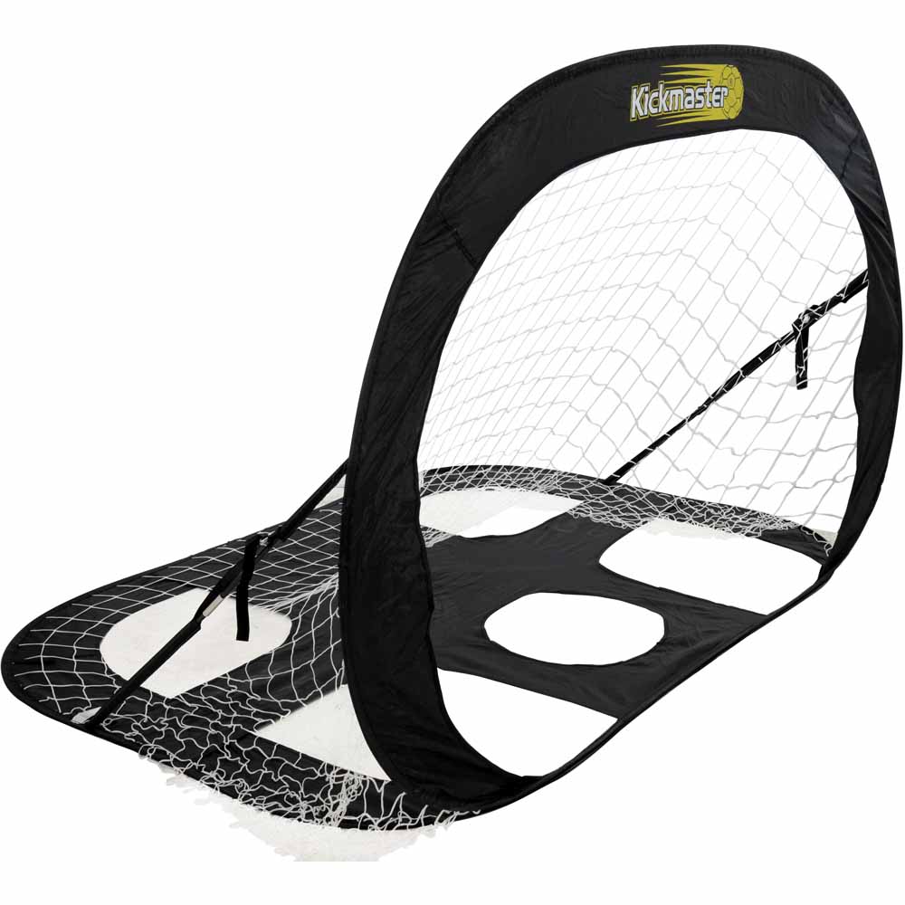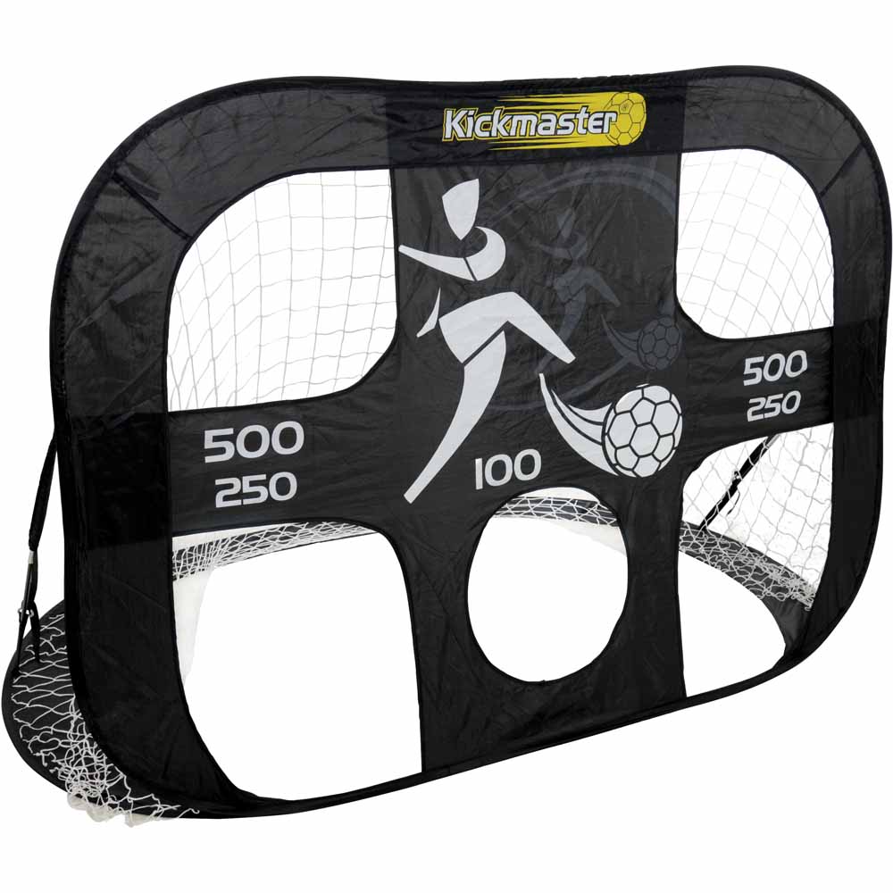 Encourage children to get outside and be active with this Pop-Up Goals and Target Shots by Kickmaster. The 2-in-1 soccer goal allows you to switch modes in seconds! On one side, there's a standard goal, perfect for practising those free-kicks and penalties whilst on the other is a target shot ideal for simply perfecting your aim or turn it into a scoring game with friends or teammates with the printed scoring system! It comes with ground pegs included for extra security when firing shots and to keep it secure on windy days. The pop-up design allows for the outdoor goal to be ready for use in seconds and folded down just as quickly and it can be simply flipped over for mode change. It comes with a durable carry case for easy storage and transportation so that it can be taken from the garden, to park, beach, pretty much anywhere! The side pockets for storage, allows you to keep essential handy. Ideal for honing skills or a fun group game, the game will provide you with hours of outdoor playtime. Age recommendation: 5+ Years. Assembly required.