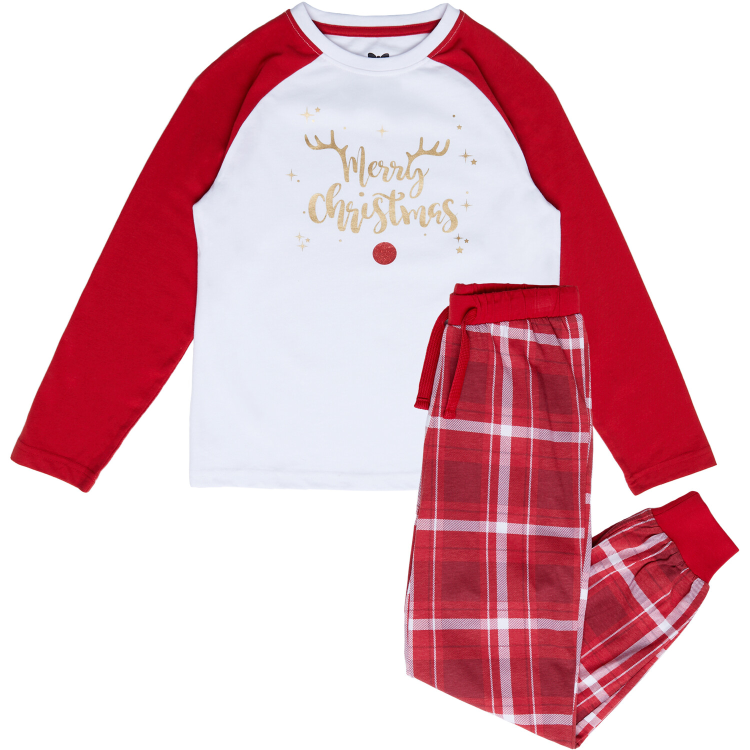 Gentle, cosy and comfy, this Kids Merry Family Pyjama Set is excellent for colder days spent cuddling up on the sofa, Christmas morning or family movie time. With a cute reindeer design on the long-sleeve top and red check full-length bottoms, this loungewear set is a festive must-have.