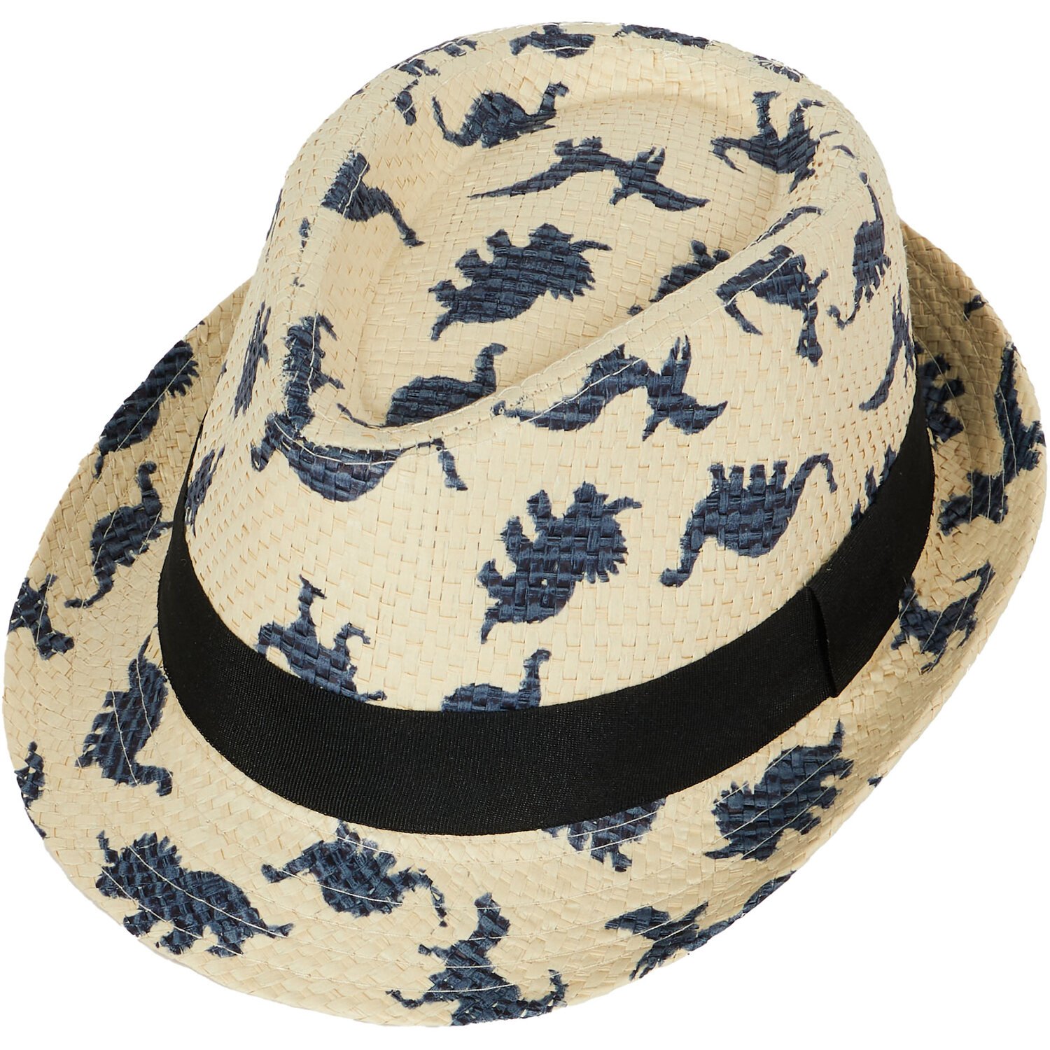Introducing the Kids Pattern Summer Trilby, the perfect summer accessory for your little ones. Keep their heads cool and protected from the sun's harmful rays with this fun, stylish, and lightweight trilby hat featuring a striking blue dino design and black band for a trendy look.