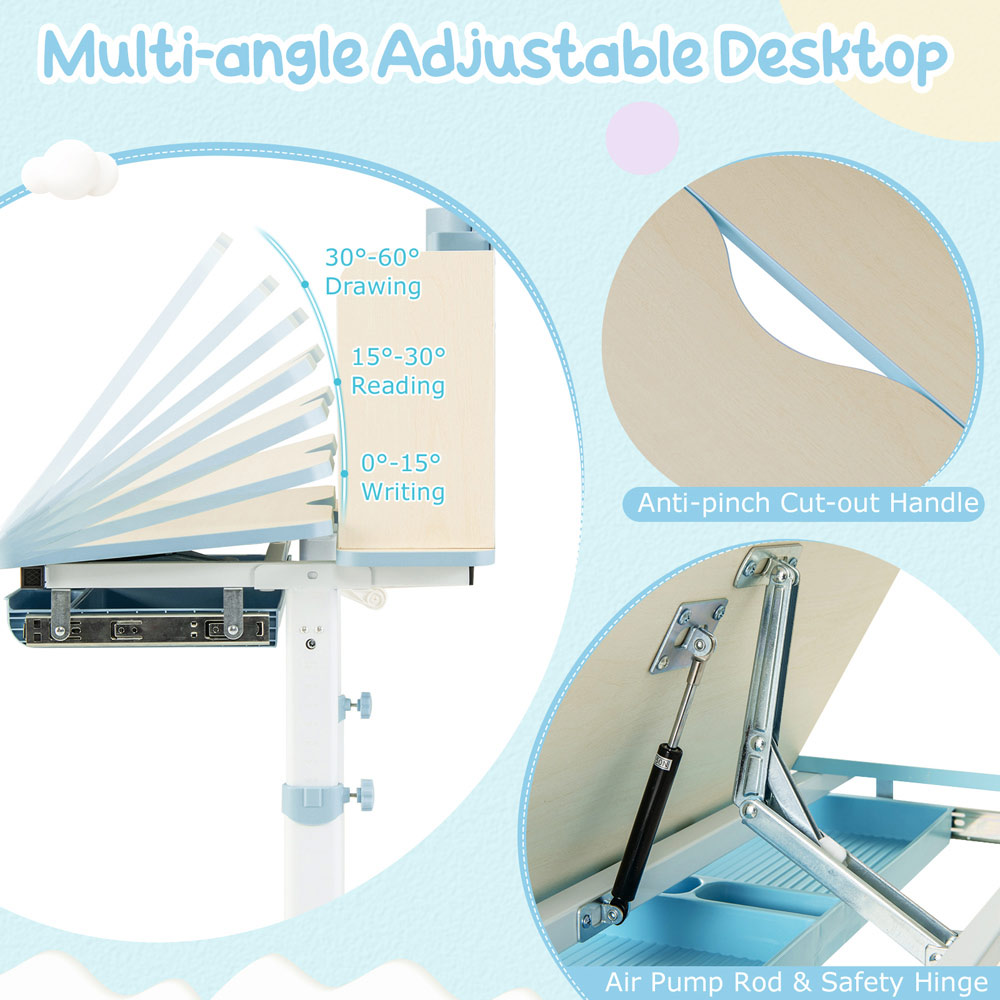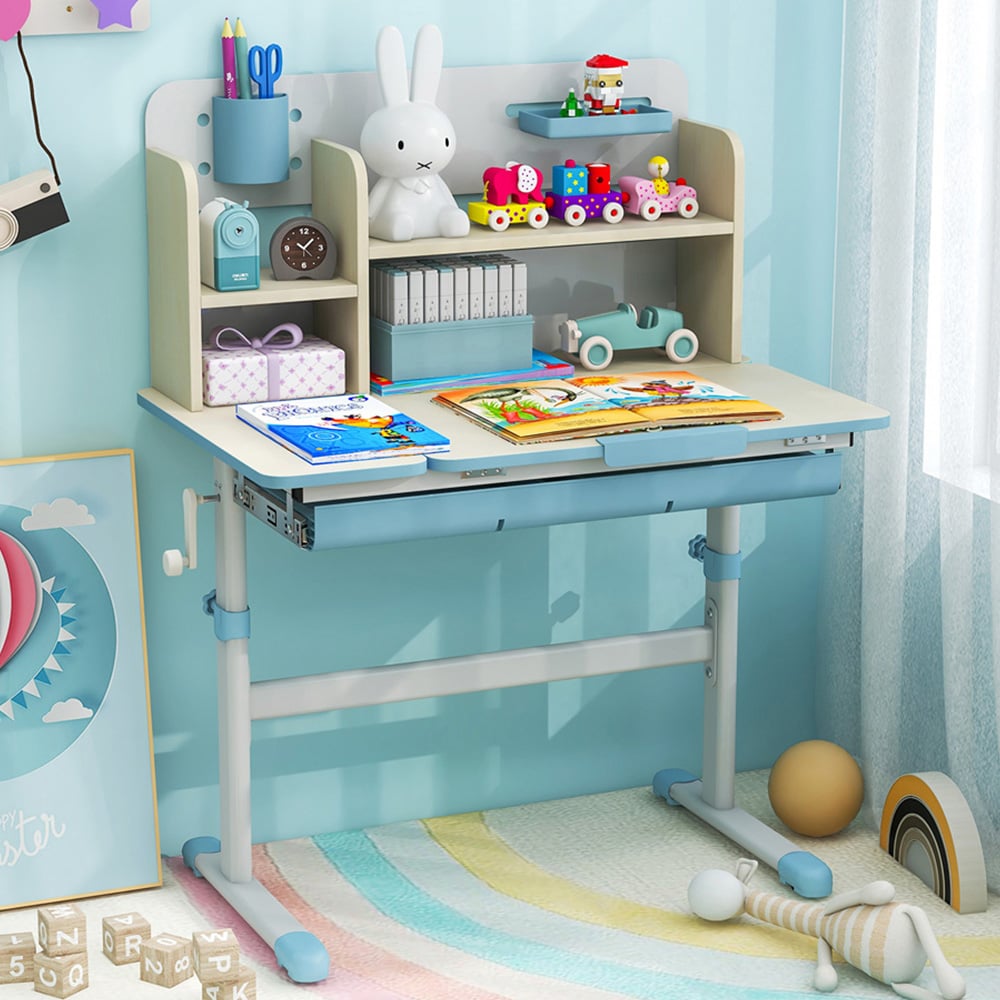 Discover the perfect blend of functionality and comfort with the Costway Kids Single Drawer 4 Shelf Adjustable Tilted Desk Blue. It is designed to grow alongside your child from ages three to 12 years. Featuring a tilt desktop with an adjustable angle from 0° to 60°, it promotes proper posture for a variety of activities including reading, writing, and drawing. The desk is equipped with a built-in scale ruler, enhancing its practicality for homework and hands-on projects. Safety is prioritised with smooth round corners, and the robust construction ensures it stands up to the rigors of daily use. With ample storage options including a hutch, large drawer, and multiple compartments, this desk keeps your child’s study area neat and organised.
