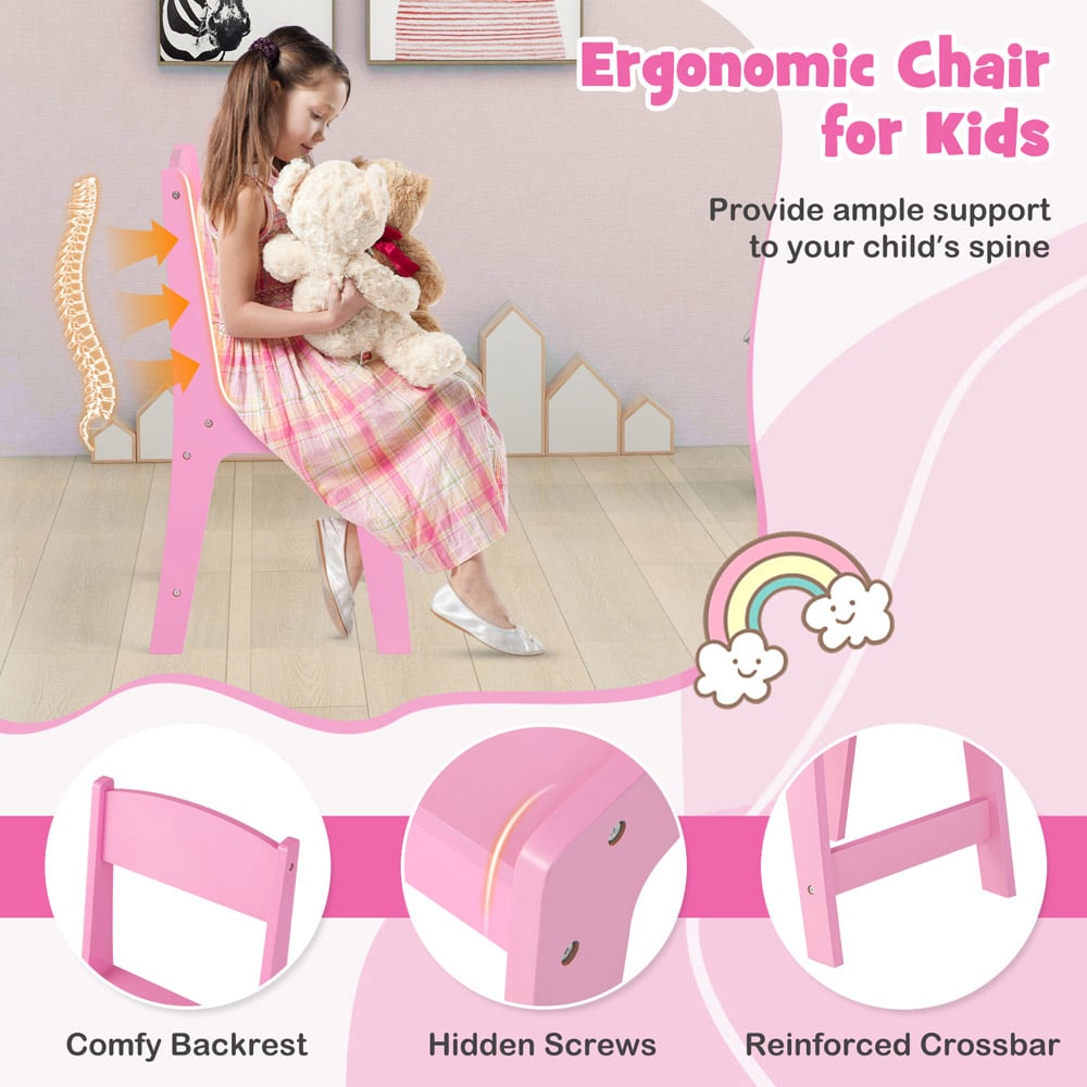 Transform your child's room into a magical space with the Costway Kids Pink Vanity Table and Chair Set with Removable Mirror. It effortlessly converts from a charming vanity to a practical writing desk. This set not only inspires imaginative play with its princess-themed design but also caters to educational activities. Featuring three removable and clear mirrors, it provides a panoramic view that enhances makeup and dressing routines, ensuring your little one feels like royalty. The set prioritises safety with its shatterproof acrylic mirrors and includes a chair designed to support proper posture. With ample storage options, including four fabric bins and multiple compartments, this set is perfect for keeping everything from beauty accessories to school supplies neatly organised.