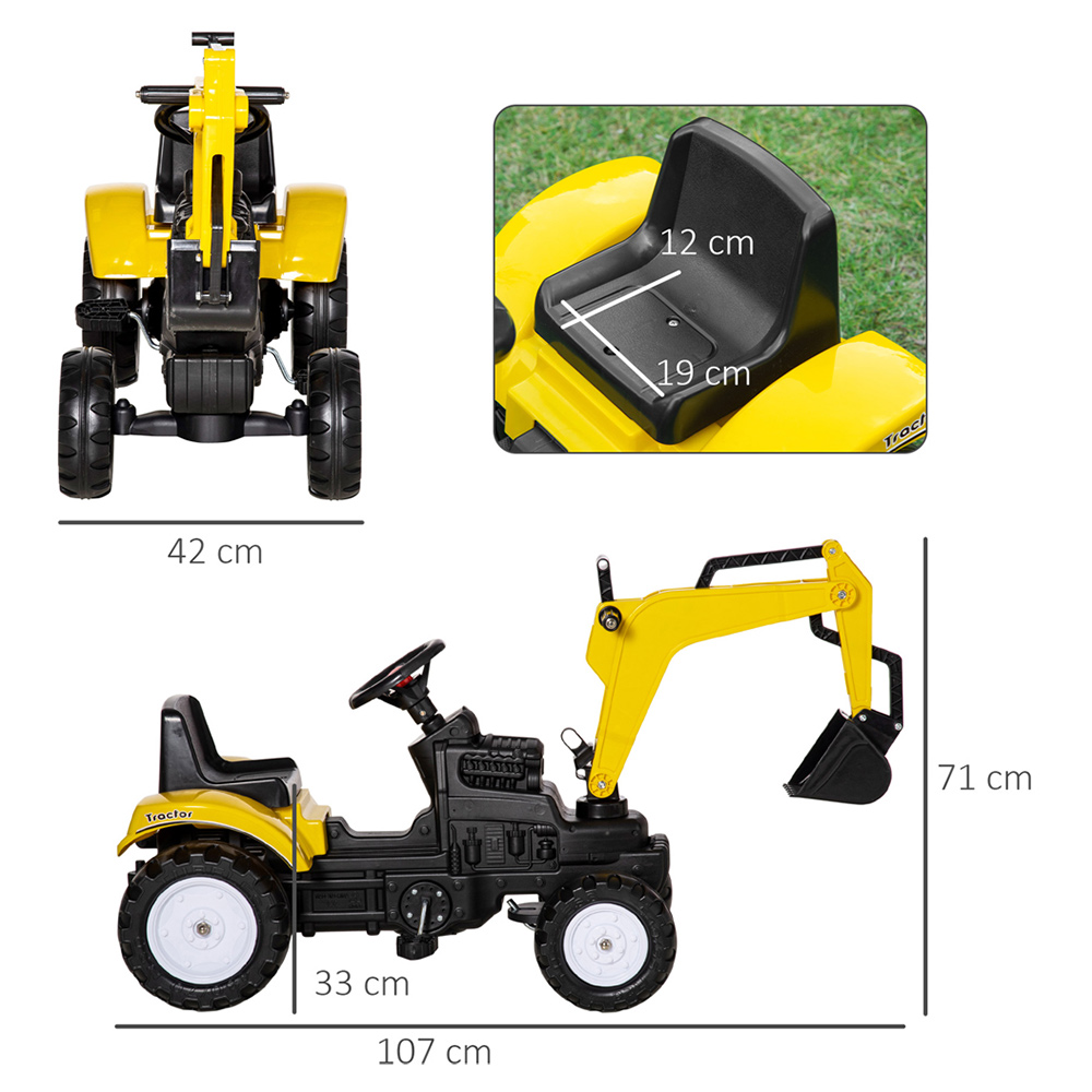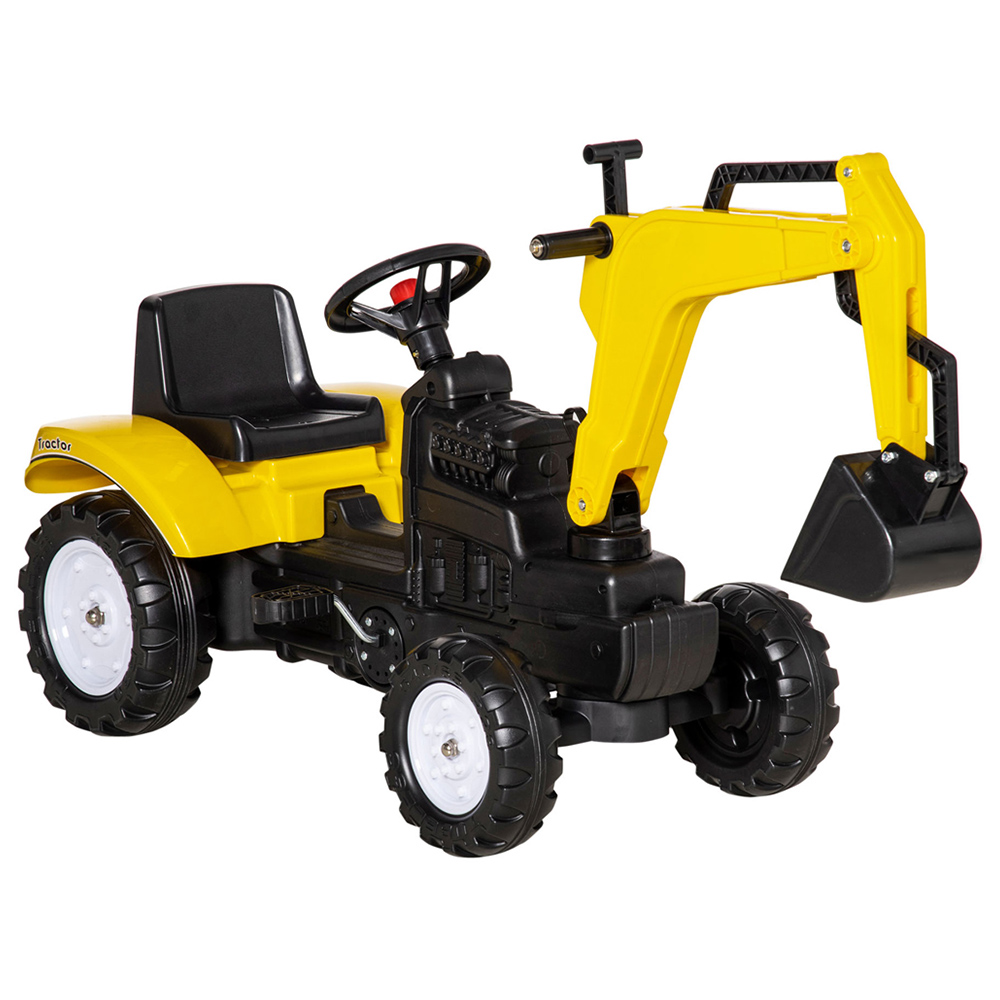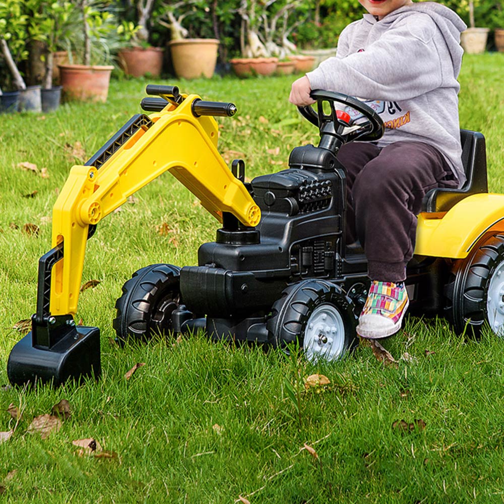 This multi-functional toy offers a lot of fun pretend play construction and a wonderful moment between parents and children. The digger can move forward and backwards. A fully controllable digging bucket, flexible arms, and joints allow children to operate the excavator with ease. The pedal digger is pedal-powered, and no power system is required. It's equipped with a real working horn for added fun. Playing with the digger toy provides your child with hours of imaginative play. It helps children's hand and eye coordination, cognitive ability, and fine motor skills. This ride-on toy is made of plastic material that's safe for your child to use daily. And the steering wheel is fully functional, making it easy to get around from one outdoor adventure to the next.
