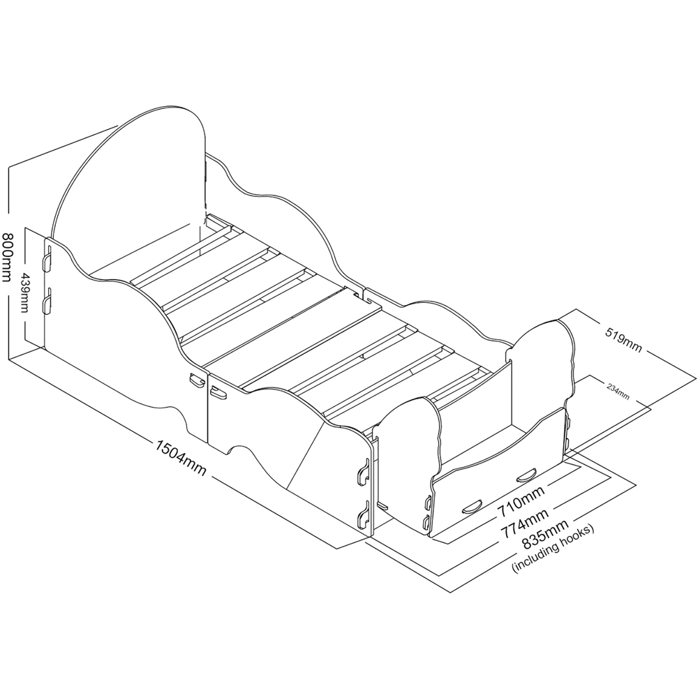 Calling all princesses everywhere… Kidsaw's new Princess Carriage junior bed is a must for your daughter. This junior bed is a perfect addition to your little princess's room. All down the sides is the carriage style design, then on the front of the bed there is a toybox in the shape of horses, which looks really effective (this is detachable if not required). The bed comes in a white painted finish with screen-printed designs. The Princess Carriage junior bed is cleverly designed to just simply slot together like a jigsaw. The mattress size for this bed is 140 x 70cm.