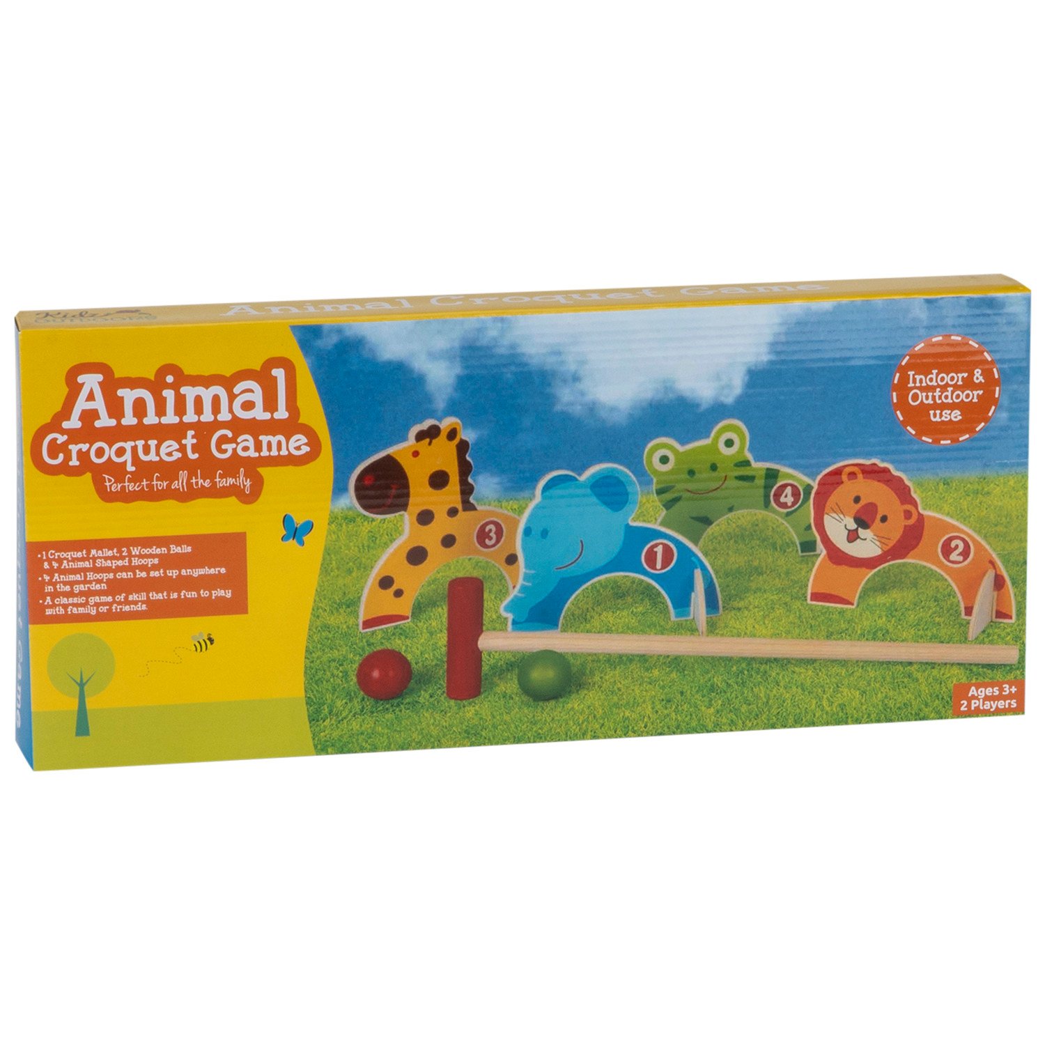 The classic game of skill has been given a cute upgrade with this Animal Croquet Game. Ideal for indoor and outdoor play, traditional croquet hoops have become colourful zoo animals to engage younger children. Coming with everything you need to play including mallets and balls, you can set this game up in the park, garden, or playroom.