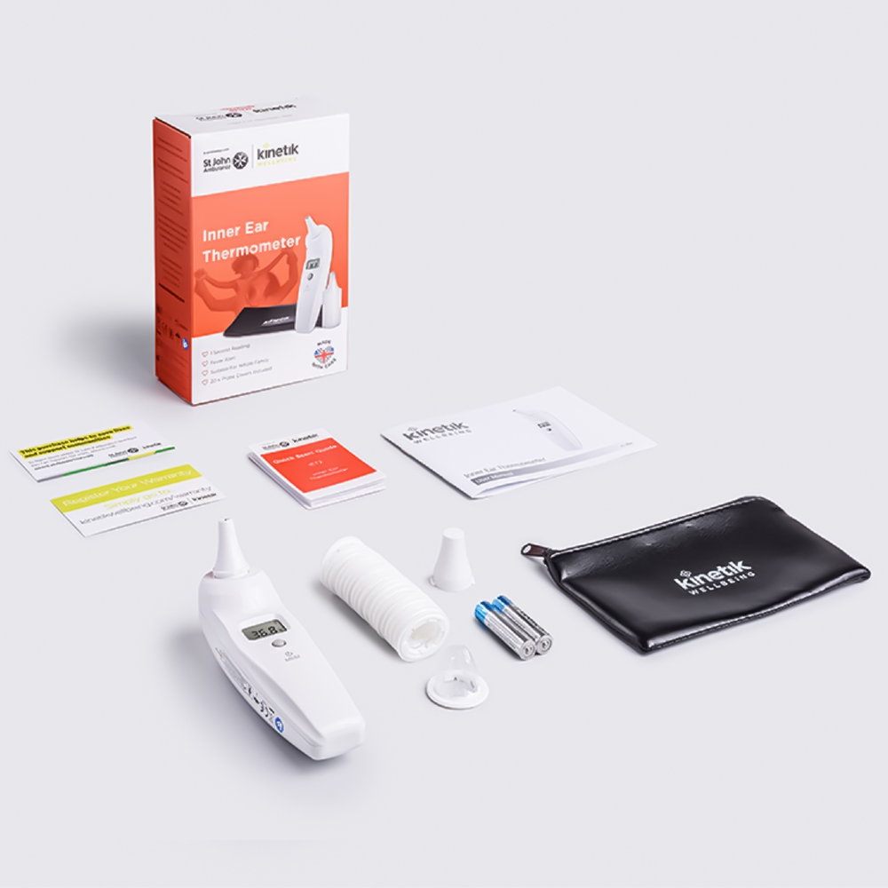 Get quick and accurate temperature readings with this Kinetik Wellbeing Inner Ear Thermometer. It detects high body temperature so you can identify illness and understand whether fever-reducing medication is required or not. Quick and accurate, it offers a one-second infrared reading and also stores ten previous readings. It's safe and easy to use so it's an ideal way to take children's temperature.