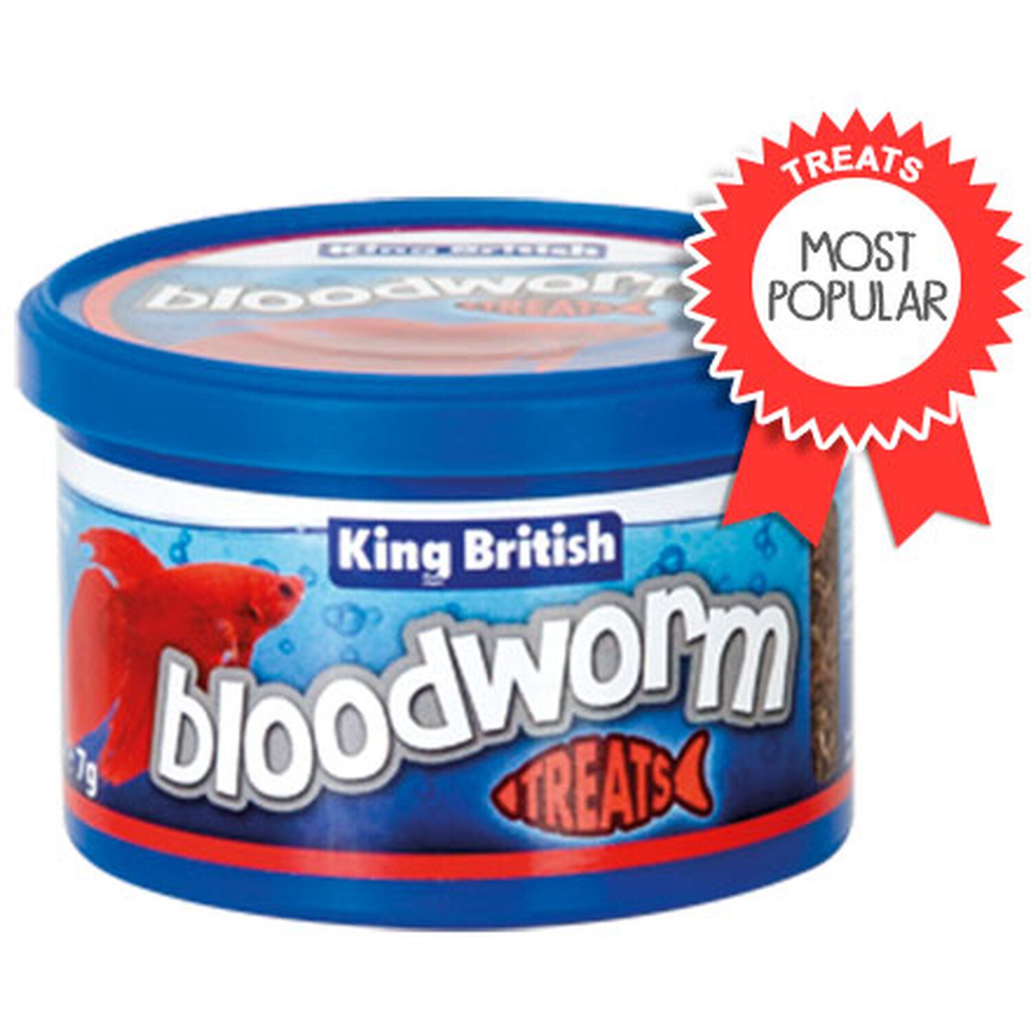 King British Bloodworm Treats are suitable for all aquarium fish, turtles and terrapins. Bloodworms are insect larvae, freeze-dried immediately after harvest to retain flavour and nutritional value. Their name comes from their natural red colour, and they are the type of food that freshwater fish would choose to eat in the wild. They are rich in iron and protein and promote excellent colour and condition. A welcome addition to any diet.