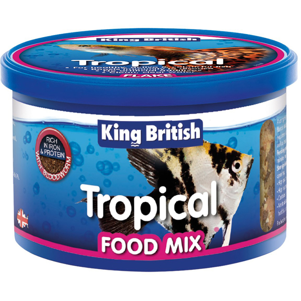 King British Tropical Mix is a complete food, suitable for all warm water fish. The food is free from artificial colours, flavours & preservatives and contains our unique Ergosan ingredient that sets it apart from ordinary fish flakes. The additional bloodworm further aids optimum nutrition, whilst making the food especially interesting for your fish.