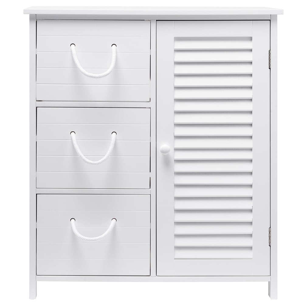 The ideal space saver for any bathroom, the Kingston Single Door 3 Drawer White Floor Cabinet add a touch of style to your home. Featuring three drawers with rope handles and a large cabinet, you can shut away those items in your bathroom taking up so much space. Whether you fill it full of towels or a loo roll, this cabinet is the perfect addition to your bathroom.