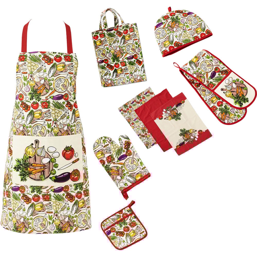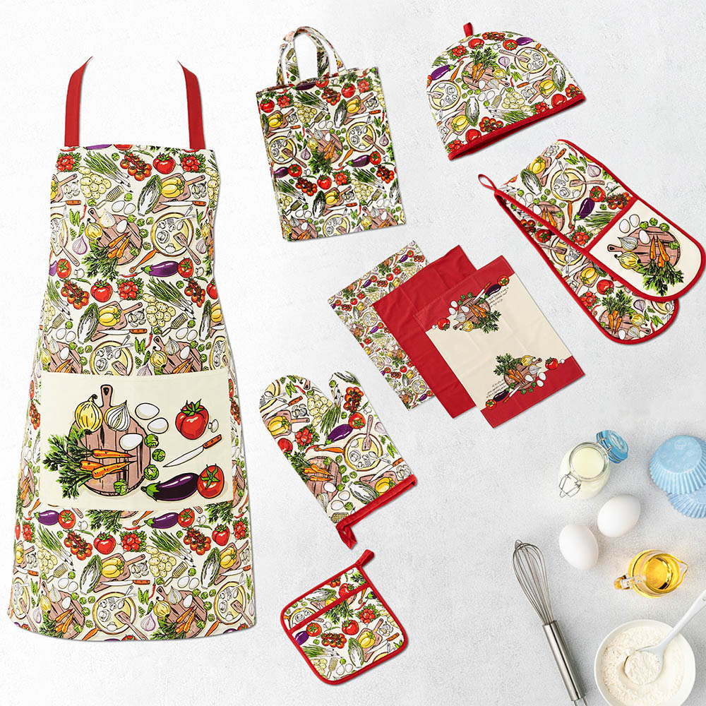 Add a touch of traditional country kitchen with the Highlands Homeware Kitchen Print Cooking Set. This cooking set includes a matching adult apron, cotton pot holder, double oven mitt, PVC-coated tote bag, single oven mitt, tea cosy and a set of three tea towels. These cooking essentials feature cute kitchen prints, making them ideal for traditional country print lovers. They are all made from high-quality cotton, making them an adorable yet convenient addition to your kitchen.