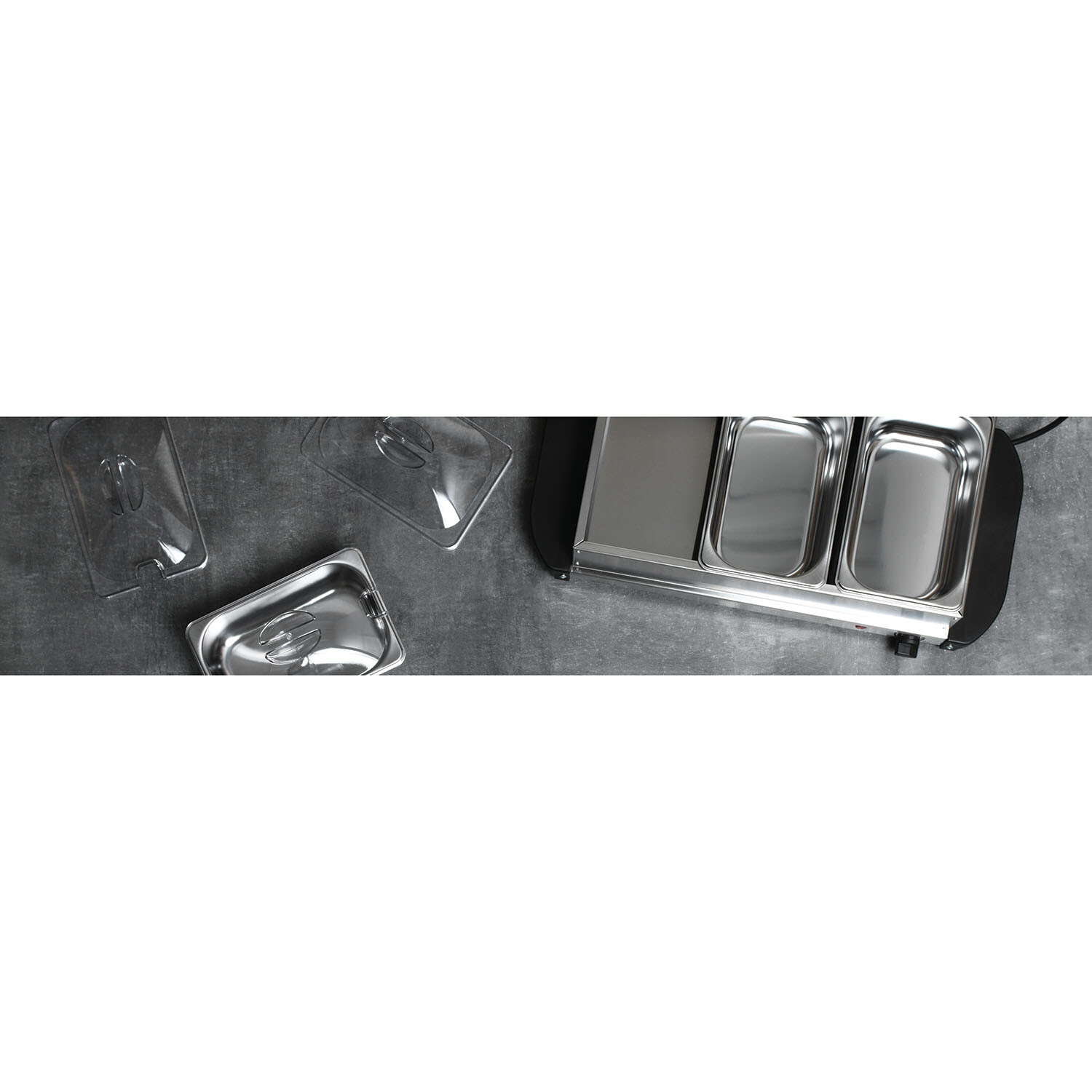Serve piping hot, delicious dishes to guests with the KitchenMaster 3 Dish Buffet Server. This server is designed with an adjustable temperature control, auto-thermostat, and on-and-off indicator light to ensure utmost convenience. It features three pans with a capacity of 1.5-litres for serving three different foods, making it ideal for weddings, celebrations, and gatherings.