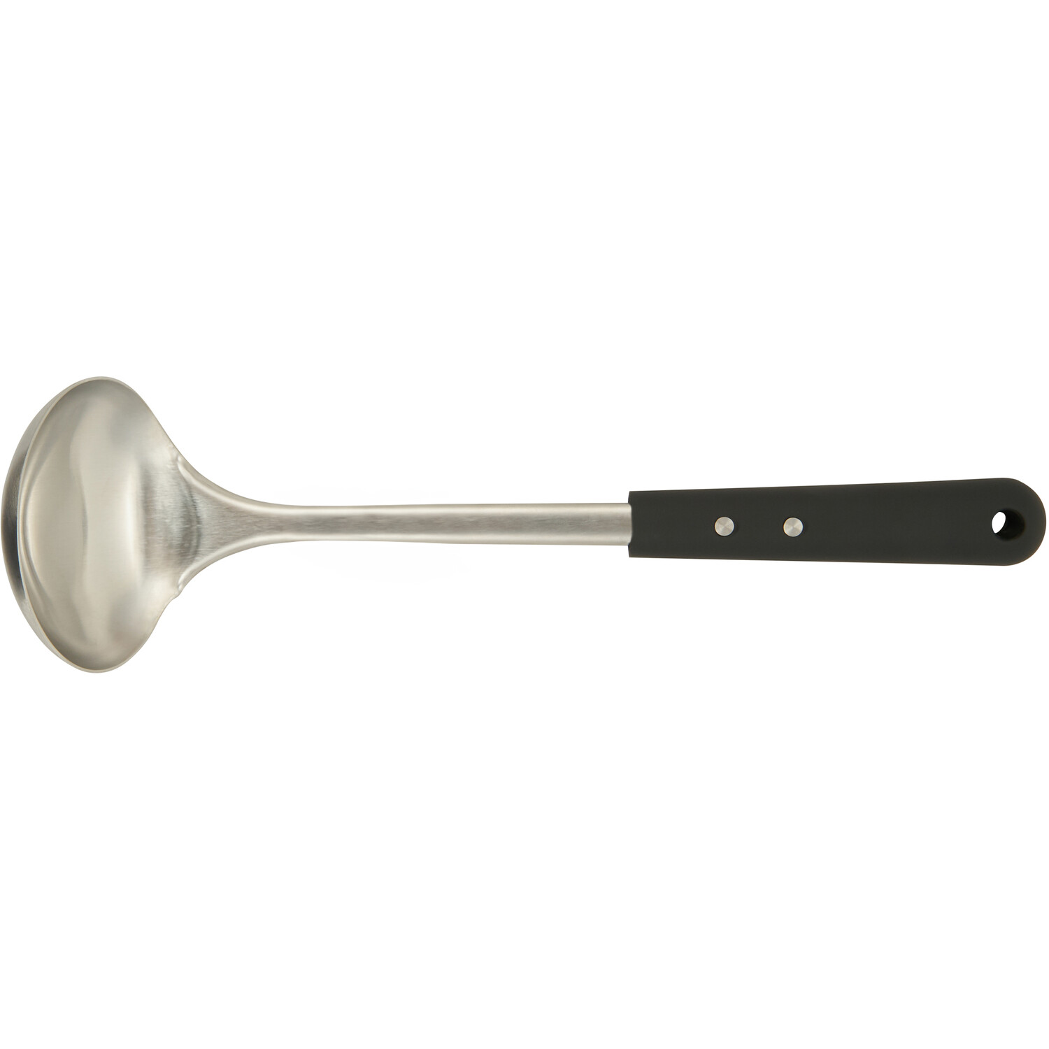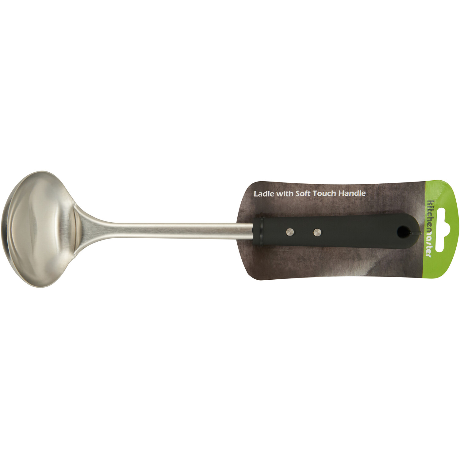 The Kitchenmaster Ladle with Soft Touch Handle is the perfect utensil for any kitchen. The ladle has a traditional look that's ideal for serving all types of dishes such as curry, stews, soups, and more. It features a comfortable soft touch handle with a hole for easy hanging and storing after use.