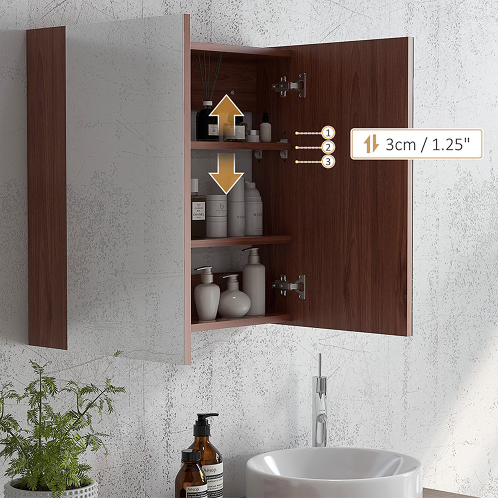 This Kleankin Bathroom Medicine Mirror Cabinet offers a stylish look and generous storage space in an easy-to-install package. It features a sleek full-overlay mirror design as well as three inner shelves to store all of your essentials, from makeup and toiletries to medicine and first-aid supplies. This cabinet is made from a durable, non-toxic particle board for long-lasting use. It’s an ideal solution for keeping your bathroom space neat, tidy and organized. It has two slow-closing chain doors, which ensure there will be no slamming or surprise pinched fingers while using this bathroom mirror with a shelf, protecting both your glass mirror and your stored items.
