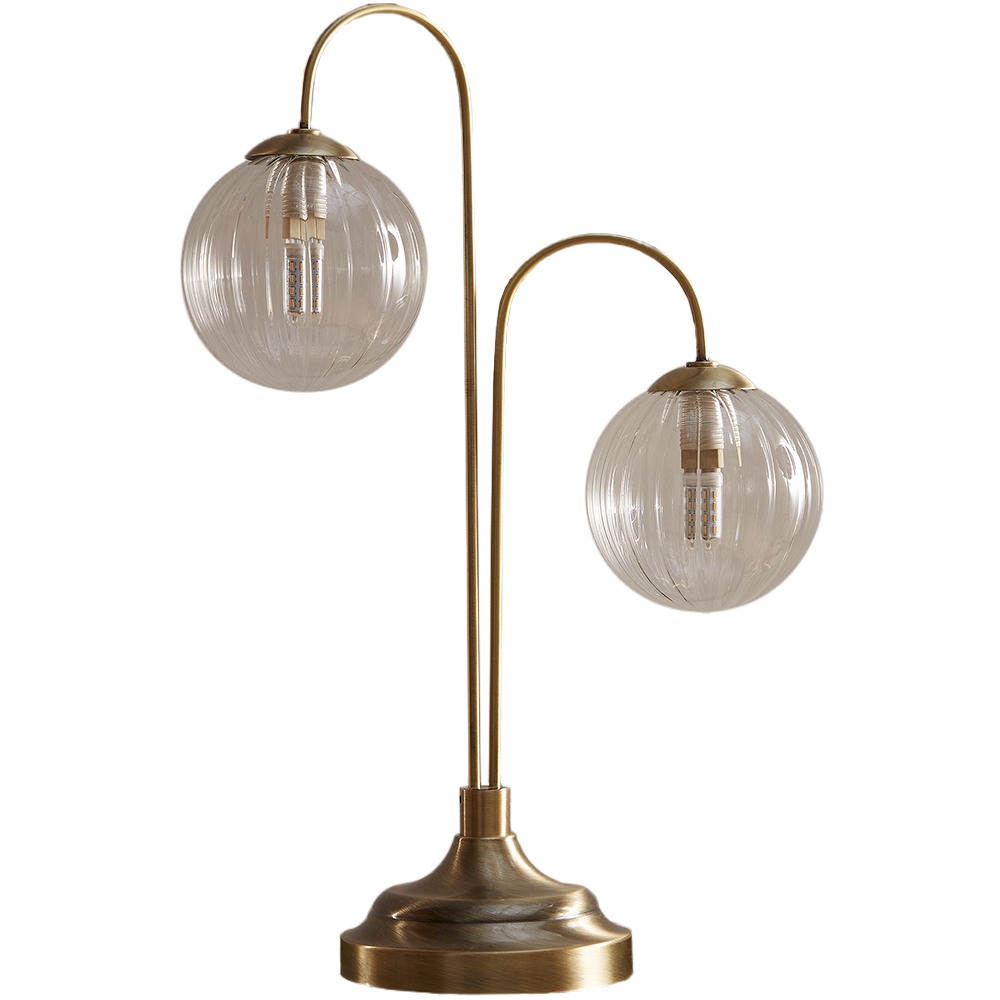Newhaven Table lamps and Floor lamps with Glass Globe shades. Available in Antique Brass or Chrome Antique Brass options come with Glass Ribbed Globe Shades Chrome options come with Smokey Glass shades Colours Available: Antique Brass, Chrome Material: Metal/Glass Size of Table Lamp: Height: 41 cm ApproxWidth - Adjustable Size of Floor Lamps: Height: 165 cm ApproxWidth; Adjustable Bulbs Required (not included):LED G9 Bulbs x 3 for Floor lamps and 2 Bulbs for Table LampsUK 3 Pin Plug with Black Cable.
