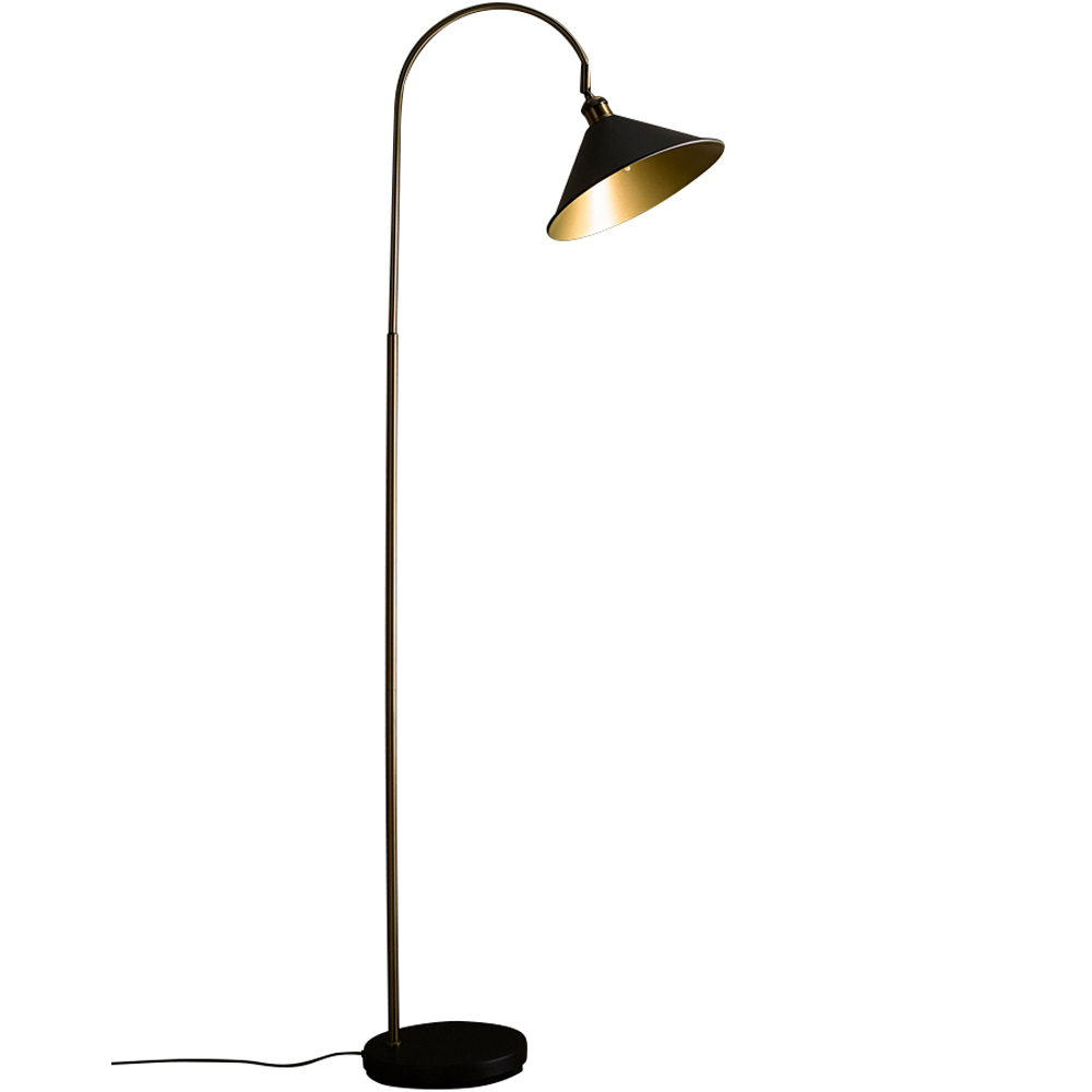 Illuminate your space with the Derby Antique Brass Floor Lamp, showcasing a chic charcoal and antique brass finish that beautifully complements modern interiors. This classic floor lamp design is revitalised with its contemporary aesthetic, featuring a charcoal-painted shade and base that harmoniously pairs with the elegant antique brass stand.