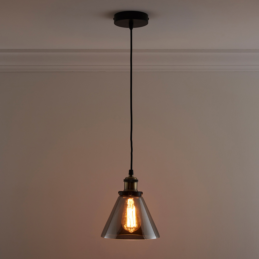 Lucy 1 light Hanging Glass Ceiling Pendant with Filament Bulb. On-trend simple yet very attractive light, that will certainly complement most rooms. Ideal for above a breakfast bar, in the hallway, or living room. Comes complete with a stylish filament bulb, giving a beautiful glow around the room. Cable and ceiling plate: Black and Antique Brass Fitting. Size: Overall height including cable and Ceiling Fitting: 120cm Width of Glass Shade: 18cm Bulb (included): ES (E27) 6-watt LED. Alternatives that can be used: ES (E27) 60 Watt Max ES (E27) 42 Watt Max Eco Halogen ES (E27) 10 Watt Max LED. Please note this pendant light requires to be electrically fitted, you will need a qualified electrician. Assembly instructions packed in with the light.