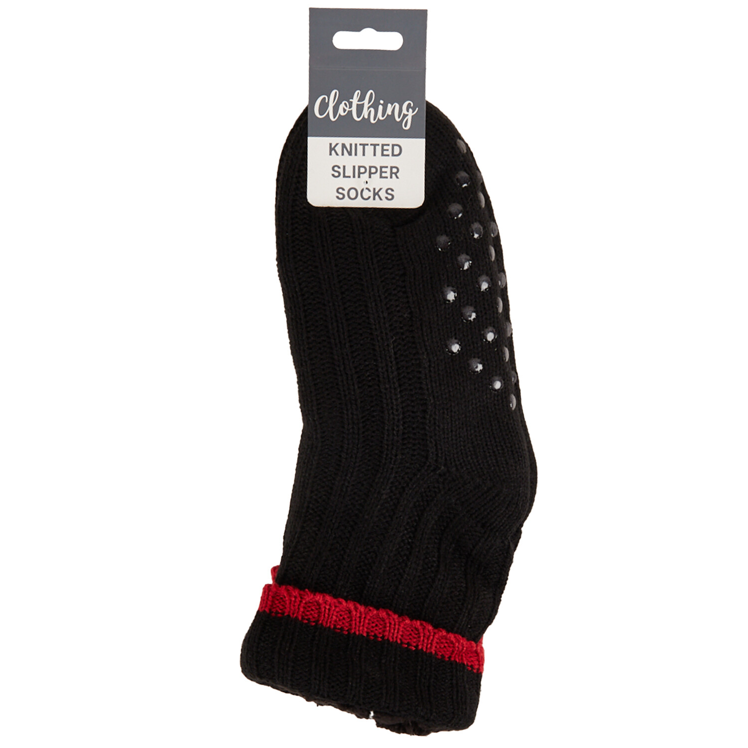 Keep your feet comfy in style with these Knitted Slipper Socks. Available in an assortment of pink or black hues, they feature a smart design that allows a comfortable fit. Pretty and practical, they're great for keeping your feet nice and toasty.