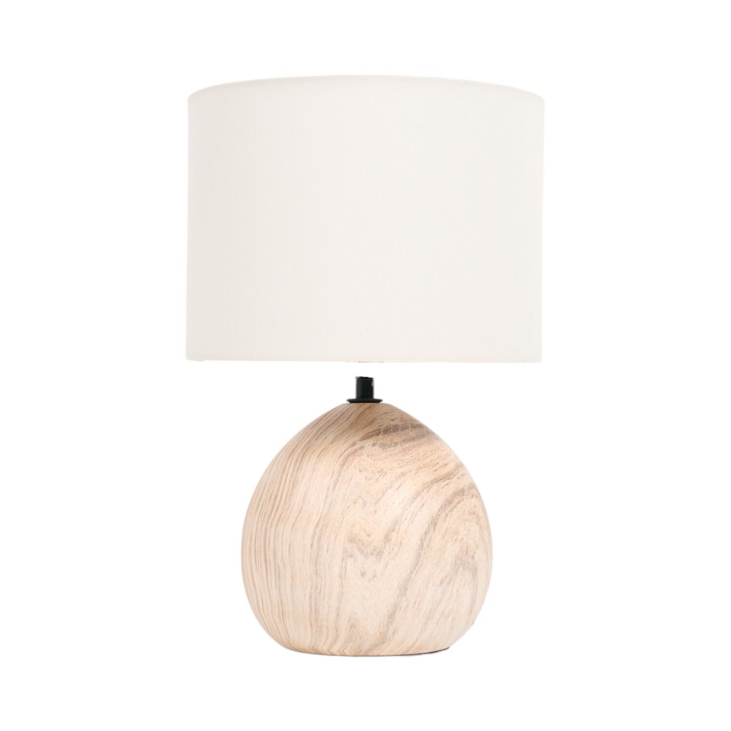 Elevate your home's aesthetic with the Koa Table Lamp. This table lamp is crafted with a wood-effect base, adding warmth and rustic charm to your space. The simple white shade perfectly balances the design, making it excellent for contemporary and coastal decor themes. Whether you place this lamp in your living room, bedroom, or hallway, it casts a soft and ambient illumination in your home.