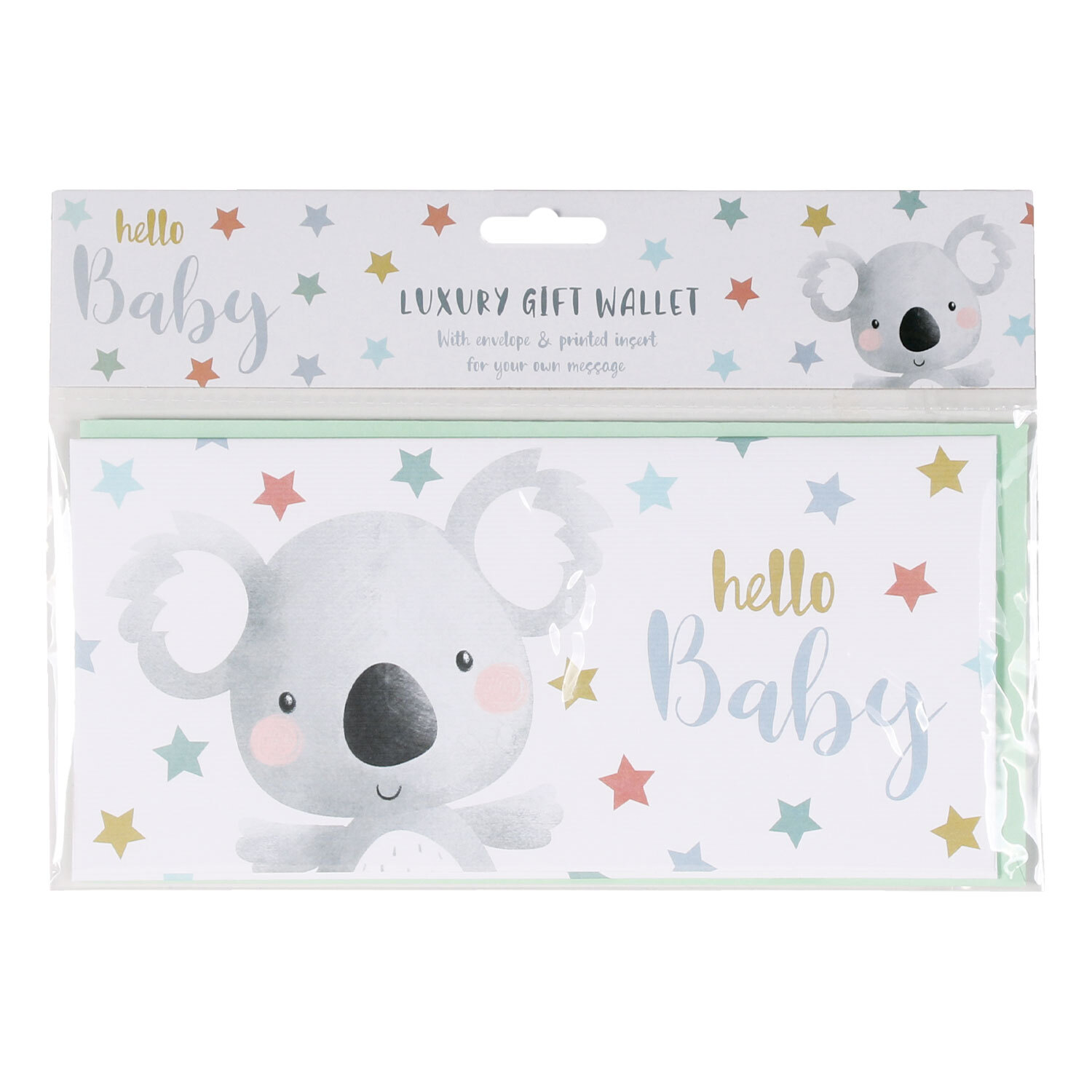 Perfect for gifting money or gift vouchers, this beautifully printed Koala Luxury Gift Wallet and Envelope is ideal for baby showers or for gifting to parents after baby has been born. The gift wallet features a hook and loop sticky dot seal so you can be assured that your gift is securely enclosed whether you're giving it in person or popping it in the post. With plenty of space for your own message, this wallet can be personalised for a truly lovely finishing touch.