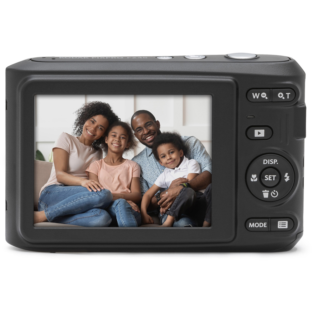 Turn everyday moments into unforgettable memories with the Kodak PIXPRO FZ45 Black Camera with 32GB SD Card. It is a compact and easy-to-use camera, perfect for taking with you wherever you go. With its simple design and intuitive controls, capturing moments has never been easier. It features a 16-megapixel CMOS sensor for sharp, clear photos and 1080p full HD video recording at 30fps. The 4x optical zoom lets you get closer to the action. Plus, helpful features like one-touch video, red-eye removal, and face detection make shooting a breeze. Powered by AA batteries, this camera is always ready to help you tell the story. It comes with a 32GB SD card and a shoulder bag with compartment.