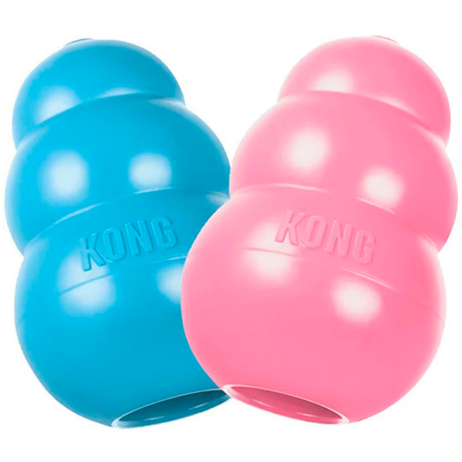 The Puppy KONG dog toy is customized for a growing puppy's baby teeth, the unique, natural rubber formula is the most gentle within the KONG rubber toy line. Designed to meet the needs of a puppy's 28-baby teeth, it helps teach appropriate chewing behavior while offering enrichment and satisfying a younger pup's instinctual needs while the erratic bounce make it ideal for those pups that just want to play. A stuffed Puppy KONG occupies busy little ones while allowing pet parents the freedom to attend to their unique needs. Want to make crate training easier or extend play time? Be sure to stuff with puppy kibble and a dash of peanut butter. Add to the fun by including KONG Puppy Snacks and top with KONG Puppy Easy Treat.