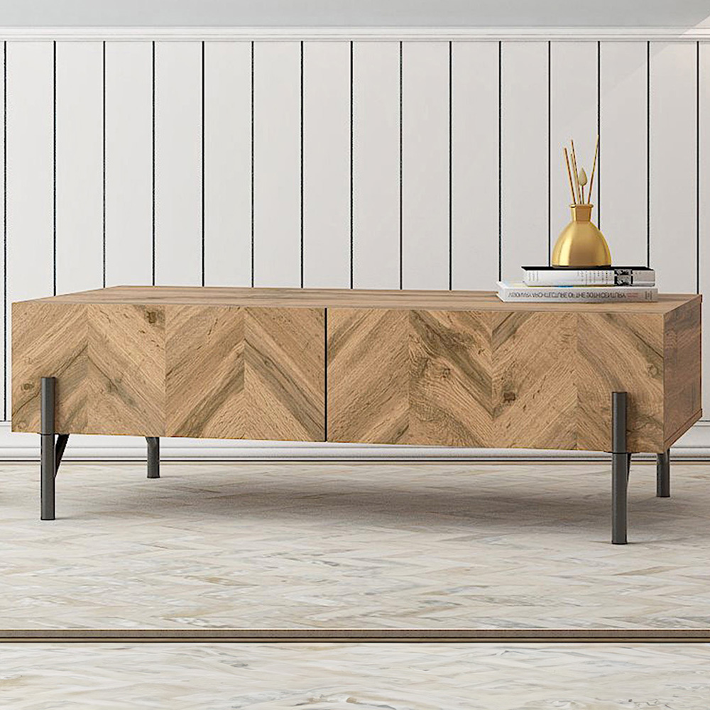 The LV37 living room series is a stunning collection that will completely revamp your space with its trendy design. The standout feature of this collection is its chevron detail adorning each door. A bold look that catches the eye. Featuring a warm Walton Oak colour, it oozes with classic beauty. The hinges are engineered to close softly, adding sophistication. The LV37 Coffee Table would compliment any modern or traditional setting. Polished black metal legs add a welcome twist.