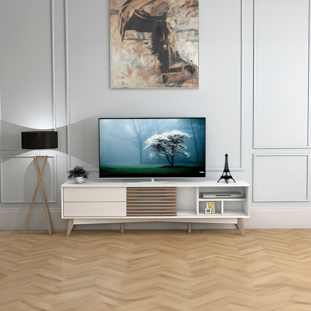 Kudl Baylla 2 Drawers 3 Shelf White TV Unit