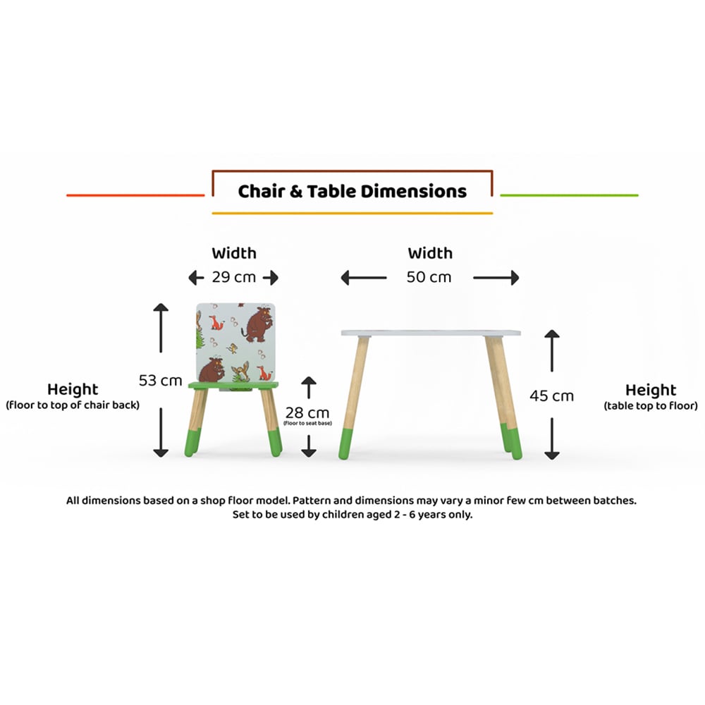 Invite the magic of the Gruffalo into your home with this delightful Gruffalo Pattern Table & Chairs set, perfect for little fans of the beloved story by Julia Donaldson and Axel Scheffler. Designed to inspire creativity and adventure, this set features vibrant, high-quality graphics of all the charming characters from the Gruffalo. It's an ideal addition to any Gruffalo or forest-themed playroom, providing a dedicated space for reading, drawing, or playing. Assembly is a breeze with its simple screw-in leg design, and the use of FSC-certified materials ensures sustainability. The modern Scandi design with pine wooden legs, dipped in paint on the ends, adds a stylish yet playful touch to any child's space.