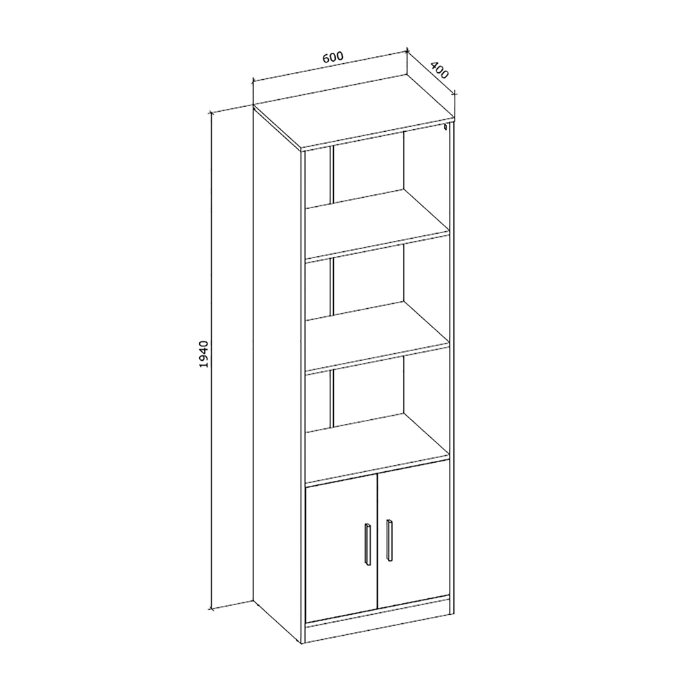 Kudl KLIO 2 Door 3 Shelf White and Oak Bookcase