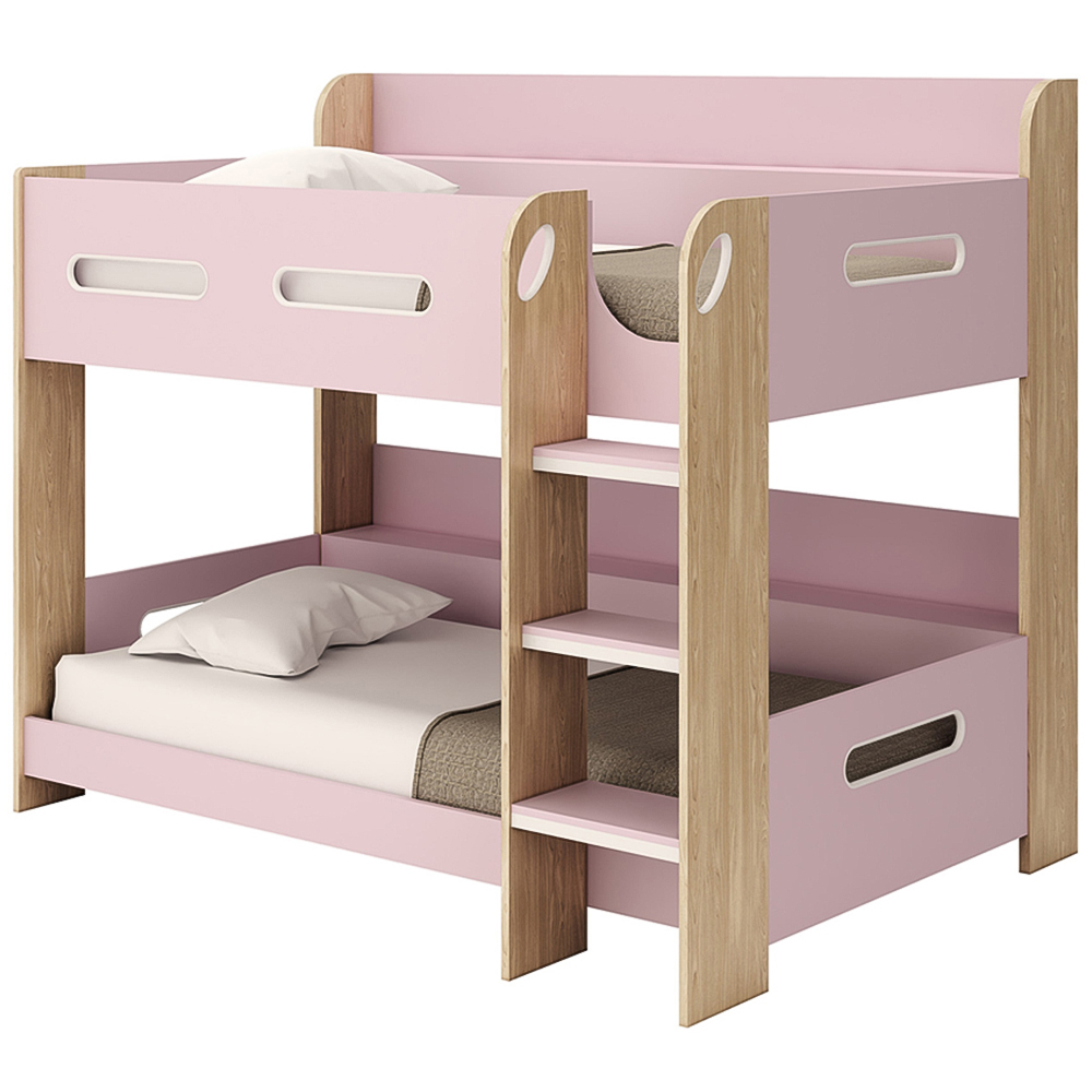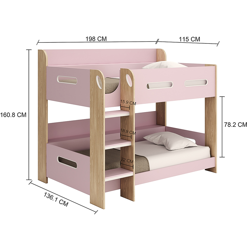 Our bunk bed is a great space-saving design for kids who share their space. Each level has its own shelving unit leaving no doubt of whose is whose. Finished in a wipe-clean durable material with thicker edges for sustained wear and tear.