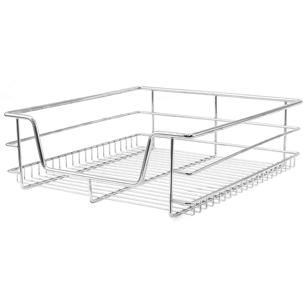 Maximise your storage space with Kukoo Silver Chrome Coated Steel Wide Cabinet Basket 5 Pack. It comes with full-extension ball-bearing runners. These strong and sturdy baskets will smoothly pull out from the cabinet for an easy and handy storage solution. Made from top-quality stainless steel, the basket is extremely strong and durable, making it withstand items in your kitchen cabinet, cupboard, or utility room. Enduring daily use in demanding commercial kitchens and households, the capacity of 15-20kg per basket can maintain these environments. The addition of a spacious basket in your cupboard can offer an extra space-saving solution for your appliances, equipment, or cleaning supplies within easy reach. The strong stainless steel adds to the metal thickness of 0.3cm and 0.9cm wire to add strength and stability. The pack includes both runners and brackets to easily allow ergonomic use for the user at different heights to adapt to your working environment. With the screws provided, you can effortlessly assemble your basket in minutes. Enhance your kitchen, bedroom, workshop, or utility room with these durable and easy-to-install modern metal storage baskets. Each basket is made to fit perfectly inside a 60cm wide kitchen cabinet or cupboard (external width).