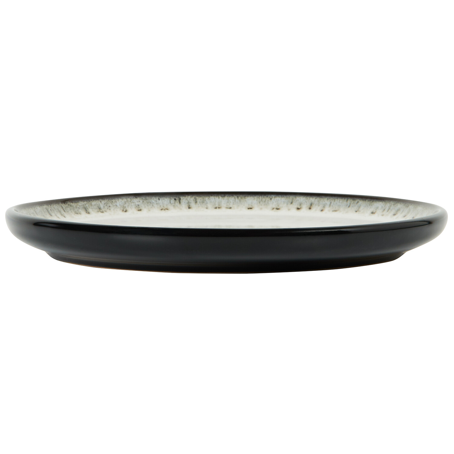 Elevate your dining experience with the Kyanite Side Plate. Featuring a chic black outer rim paired with a white centre, each piece boasts a unique design created by the firing process. The elegant coupe shape and sophisticated finish make it a contemporary must-have for any table setting.