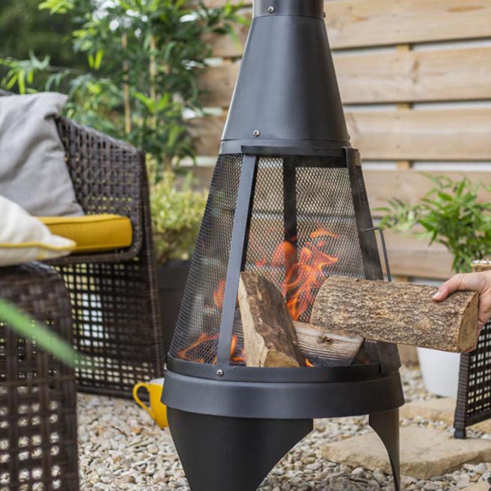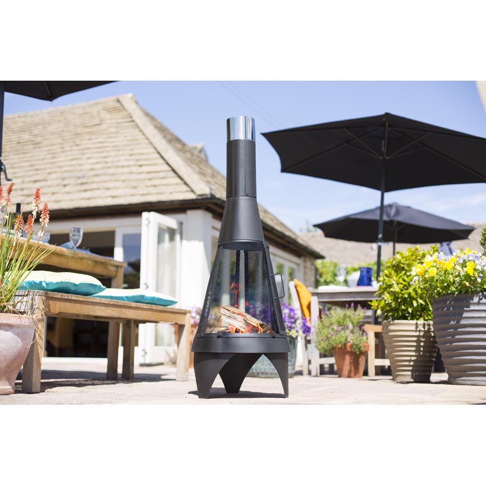 Create a cosy atmosphere with Mesh Colorado Steel Chimenea. With its 360-degree view of the fire, it is ideal for a group to sit around and relax in the heat of the flames. Featuring durable heavy-gauge steel construction with mesh body - it includes stainless steel flue band, log grate and safety tool. The sliding door allows easy refuelling to keep the fire stoked and burning.