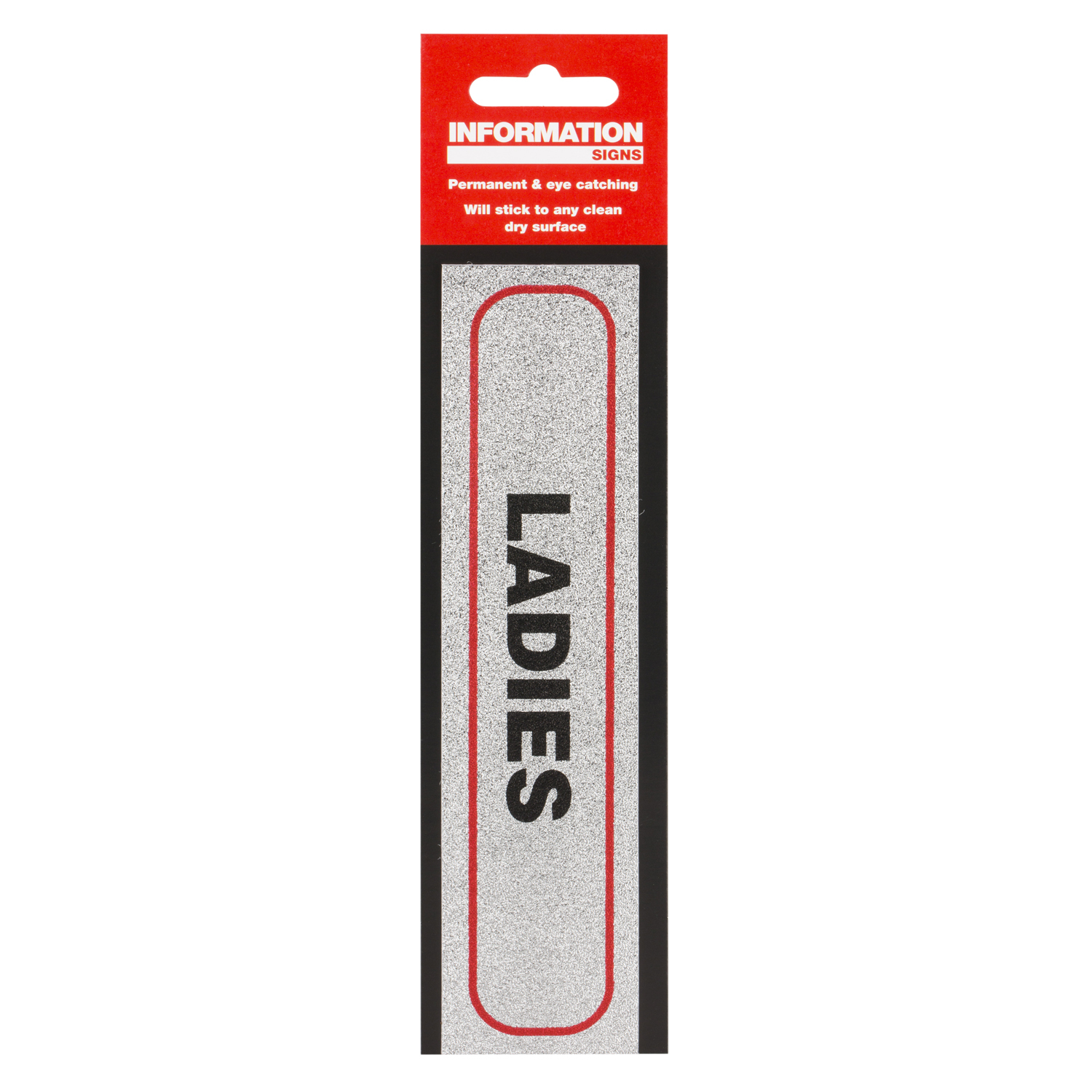 Prevent confusion between men's and women's bathrooms with help from this Ladies Sign. Made from easy to use self adhesive vinyl, simply stick on to a door and never have people walking into the wrong toilet again.