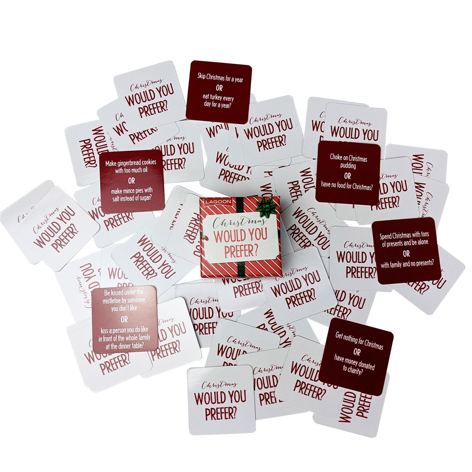 A little present packed with fun! Christmas Tabletop Games is all wrapped up to look like a mini present and inside there is some fun-packed entertainment for the whole family in the form of a game of Christmas Charades, Guess A Sketch, Hum That Tune, Sixty Seconds, or Would You Prefer!! This mini present of fun makes a perfect stocking filler or table favours for the festive season and there are six to collect!