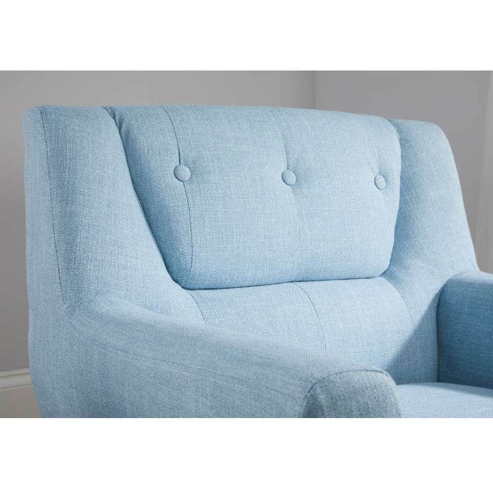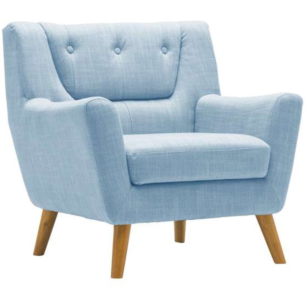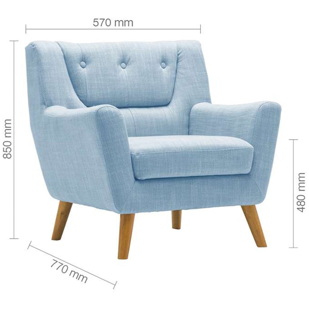 Add an eye-catching centrepiece to your living room with this Lambeth Chair. With its streamlined shapes and classic button backrest this retro-inspired armchair will add a cool, contemporary finish to any room setting. The Lambeth armchair has a duck egg blue finish with coordinating elegant wooden legs. Also, this sofa has a maximum weight load of up to 180 kg and can be easily assembled. Please note that the legs for the Lambeth are contained within a zipped compartment in the base before assembly.