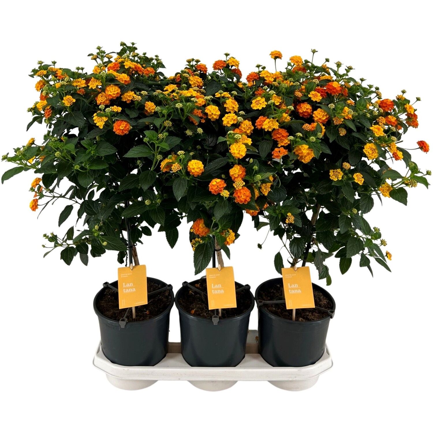 Brighten your garden with the Lantana Oker Stem. This heat-loving plant is drought-tolerant and heat-tolerant, making it perfect for adding a touch of charm to your home this summer. It showcases clusters of yellow-orange flowers that attract bees, butterflies, and other pollinators to enhance your outdoor area's ambience.