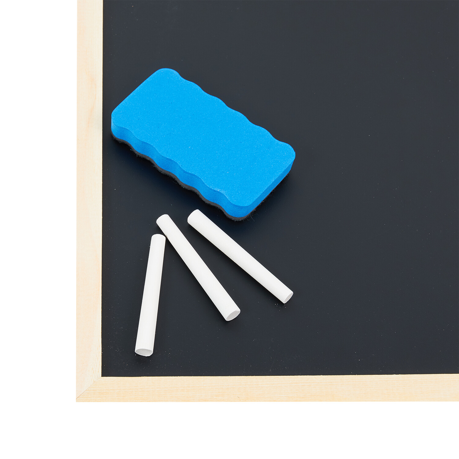 Great for use in school, at home, or in the office, this Large Blackboard Set with 2 Chalk Packs and Eraser is perfect for taking notes, jotting down important reminders, and more. The blackboard is easy to hang with the included hanging string and comes complete with chalk for your convenience. It's a practical and reusable addition to any workspace.