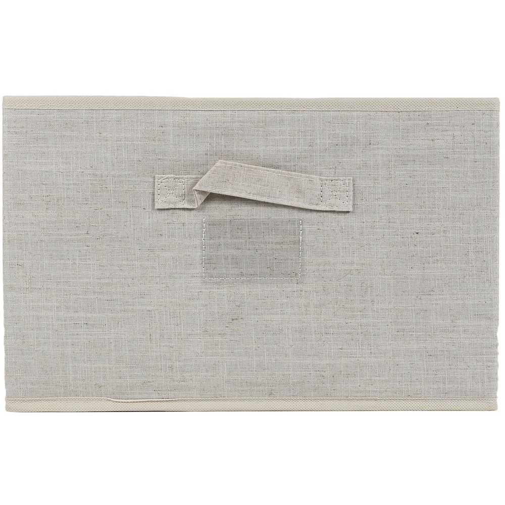 Keep your home neat and organised with this Large Cream Linen Storage Box. Ideal for storing clothes, shoes, toiletries, games and more, this box offers both style and practicality. It has a handle for easy mobility and a slot to put a label in, so you know what's in the box before pulling it out. It even folds flat for easy storage when not in use.