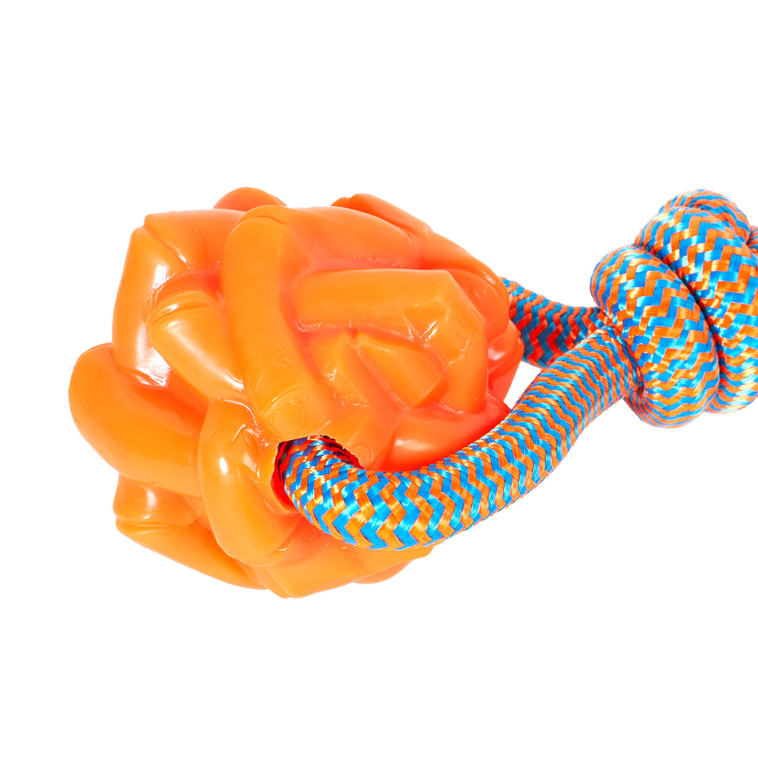 Encourage interactive play with this Large Tough Rope and TPR Dog Toy. Perfect for playing tug of war, spending time and bonding with your dog, the toy will make indoor and outdoor play hours more enjoyable. It can also help your pet with anxiety and boredom or even divert their attention from chewing things they shouldn't. The toy is available in an assortment of three styles.
