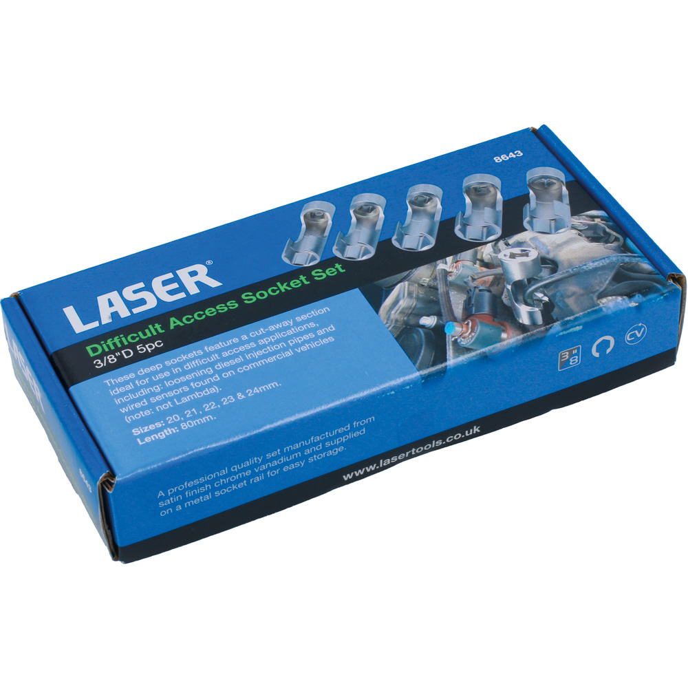 Laser 3/8 inch Difficult Access Socket 5 Pack