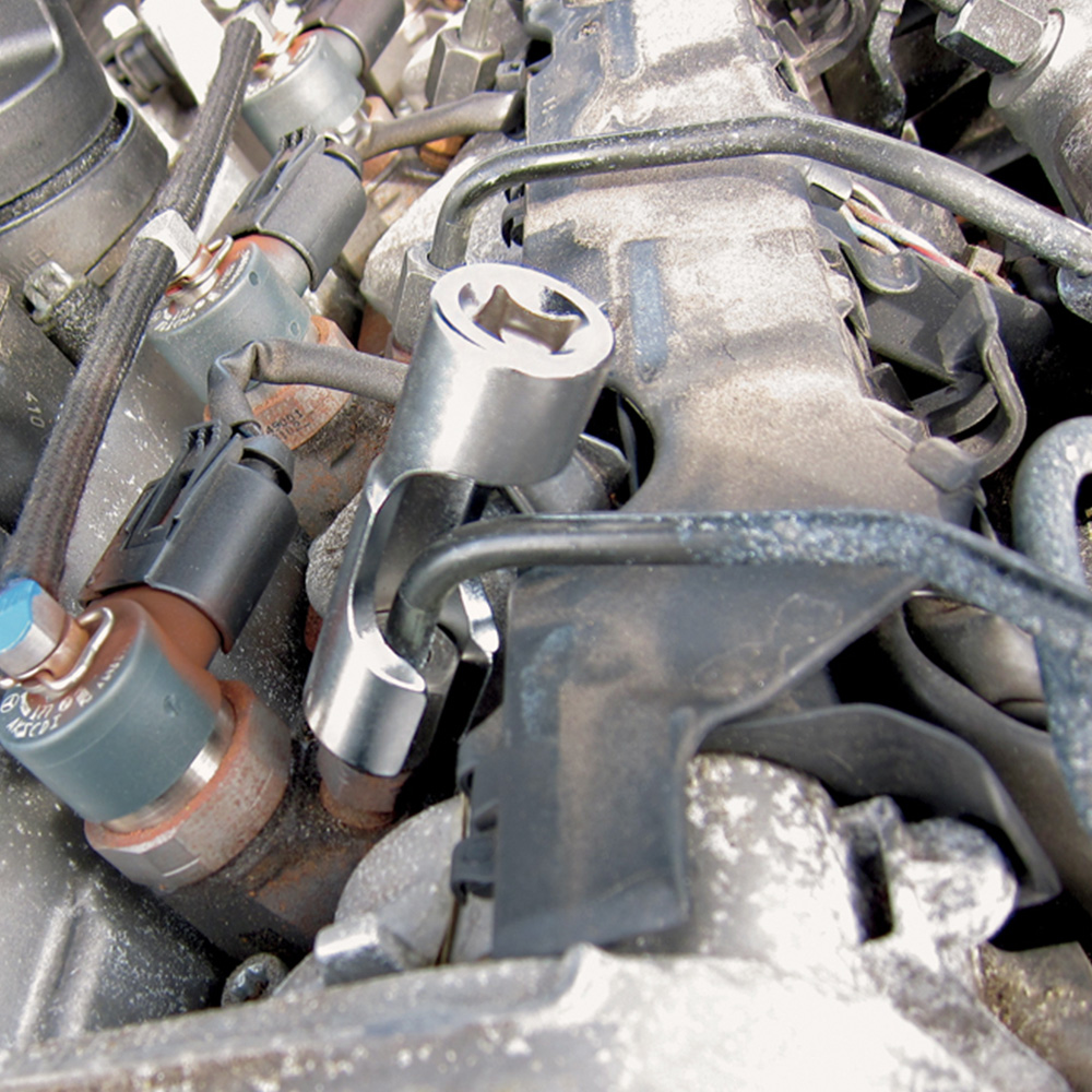 A set of five difficult access 3/8"D window sockets in a useful range of sizes from 20mm to 24mm. These deep sockets feature a cut-away section to allow access to pipe connectors and wired sensor units. A professional quality set manufactured from satin finish chrome vanadium and supplied on a metal socket rail for easy storage.