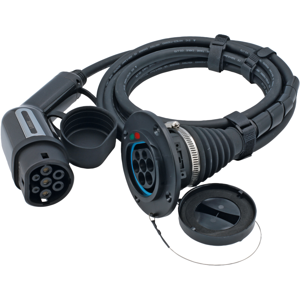 Power up your electric vehicle journey with the Laser 7.4kW 32A IP65 T2 Female to T2 Male Single Phase EV Charging Extension Cable 5m. Designed for single phase 32A charging, this cable is compatible with type two connectors and supports up to 7.4kW, making it ideal for charging stations and home wall box chargers. With a five metre reach and supplied in a handy zip-up carry case, you'll find it simple to store and ready to use whenever you need extra length for your charging cable. Durable polycarbonate connectors with copper alloy contacts ensure lasting performance, while an IP65 rating means you can confidently use it in various weather conditions.