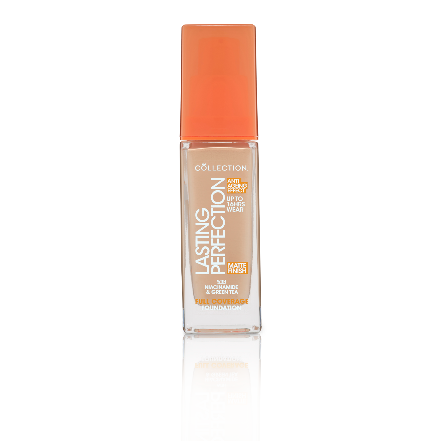 Lasting Perfection Matte Foundation is your go-to for fresh, flawless skin from morning to night. Its high-coverage, long-lasting formula provides a smooth finish that stays put all day. Infused with niacinamide, green tea and glycerin, it helps nourish the skin while instantly covering dark spots, blemishes, redness and textures. Suitable for vegans, this lightweight foundation effectively reduces the appearance of pores and improves skin texture.