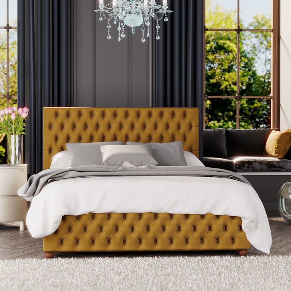 Experience the epitome of relaxation with this Laurence Llewelyn Bowen Seren King Size Berry Plush Velvet Fabric Ottoman Bed. Introduce contemporary glamour and British craftsmanship to your bedroom with this bed. This is a premium bed that exudes style and high-quality design and features a large storage area within the bed frame, making it a practical storage solution for modern homes. It has a headboard and a footboard with vertical scoring, and the headboard has been constructed with deep foam padding for extra comfort when reading or sitting up in bed. Handcrafted down to the last stitch, the bed has chunky upholstered panels to ensure lasting quality. The bed, finished with hand-turned and varnished hardwood feet, features quality sprung slats to improve mattress lifespan and comfort. For easy access to the storage area, the lift mechanism is supported with quality gas pistons. Once the bed is elevated, it will hold its position, allowing hands-free access. Additionally, the velvet bed has a dust protection sheet with a fabric base attached to the underside of the bed. UK mainland delivery only.