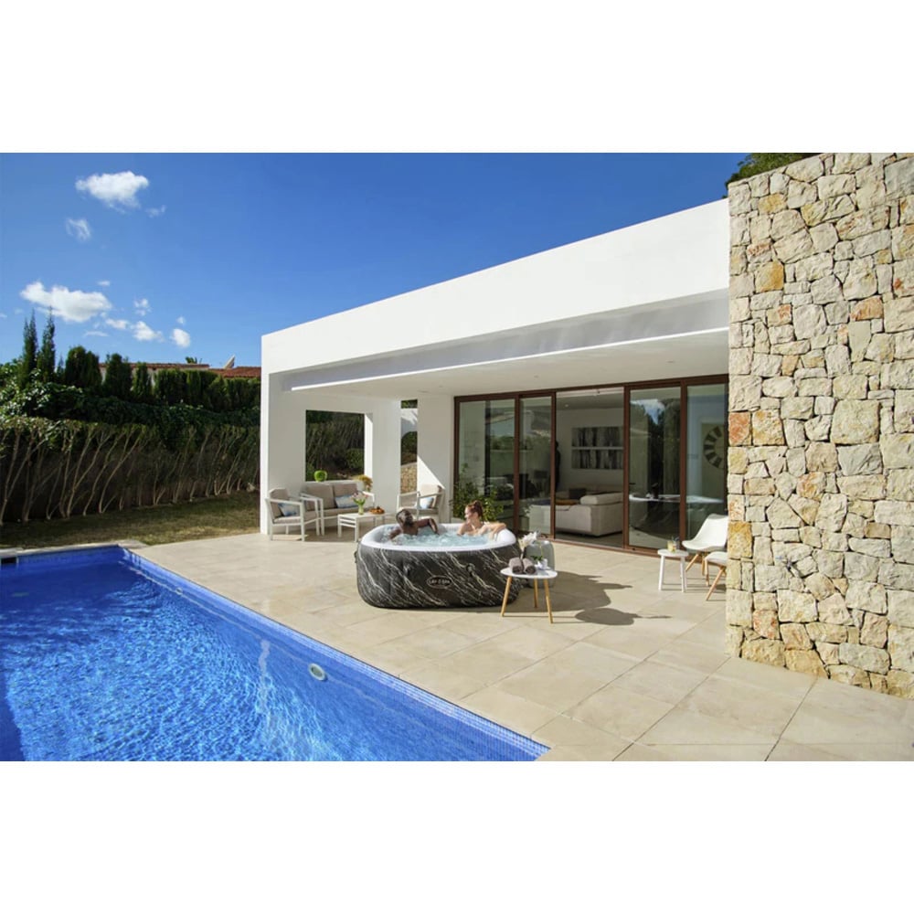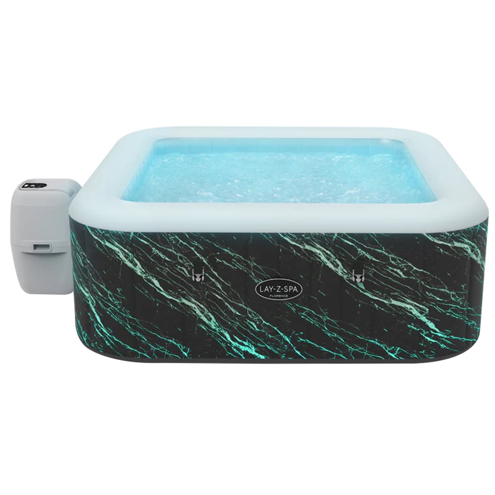 Immerse yourself in the vibrant ambience and therapeutic comfort of the Lay-Z-Spa Florence Luxe AirJet, an inflatable hot tub designed to accommodate up to six people in luxurious style. Featuring a powerful 140 AirJet massage system, this hot tub envelops you in thousands of tiny bubbles, providing an all-encompassing massage that's perfect for relaxation or entertaining. The colour-changing LED lighting, controlled remotely, adds a dazzling touch, shining through the semi-transparent walls to create mesmerizing light patterns inside and out. With the innovative Freeze Shield technology, enjoy the benefits of hydrotherapy throughout the year, as it automatically heats the water during colder months, while the TriTech material ensures durability and comfort.