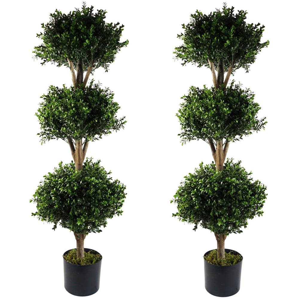 Leaf Artificial Buxus Triple Ball Topiary Tree 120cm 2 Pack