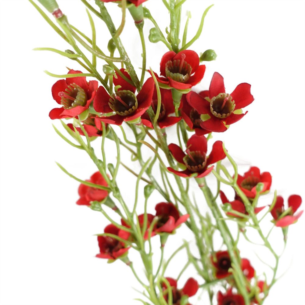 Pack of 6 x 100cm Artificial Foliage stems with Small Flowers - Red. Large blossom spray stems with small silk flowers and wired shapable stems. Leaves are plastic. Can be used to make arrangements with our other artificial flowers or as decorations on their own. Each stem measures 100cm overall height x 12cm. These are easy to cut down shorter using a pair of wire cutters if required. Some of our photos show vases to give an idea of size and possibilities for arrangement, but no vases or planters are included with this foliage.